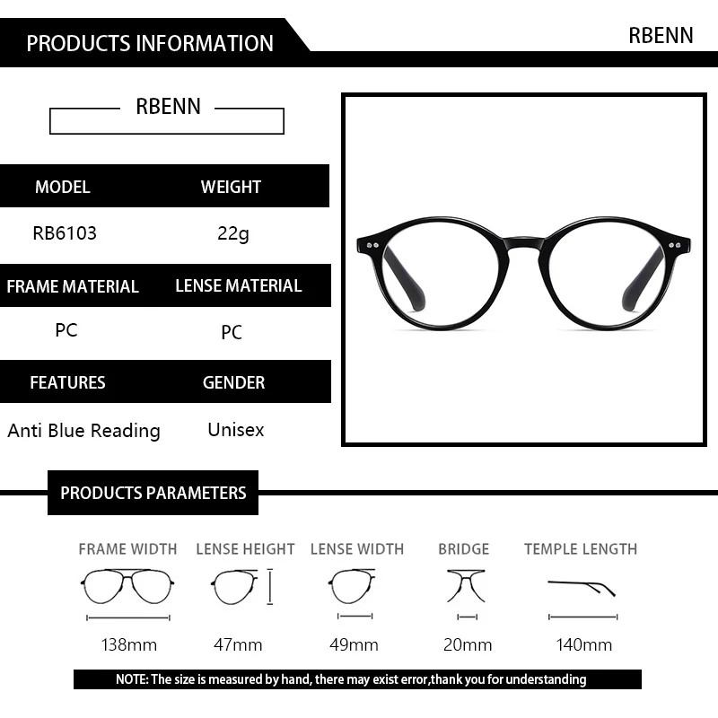 Очки для чтения унисекс RBENN, Круглые, для мужчин и женщин, с защитой от сисветильник, для чтения Пресбиопии, + 2021, 1,0, 1,5, 2,0, 2,5, 3,0, 3,5