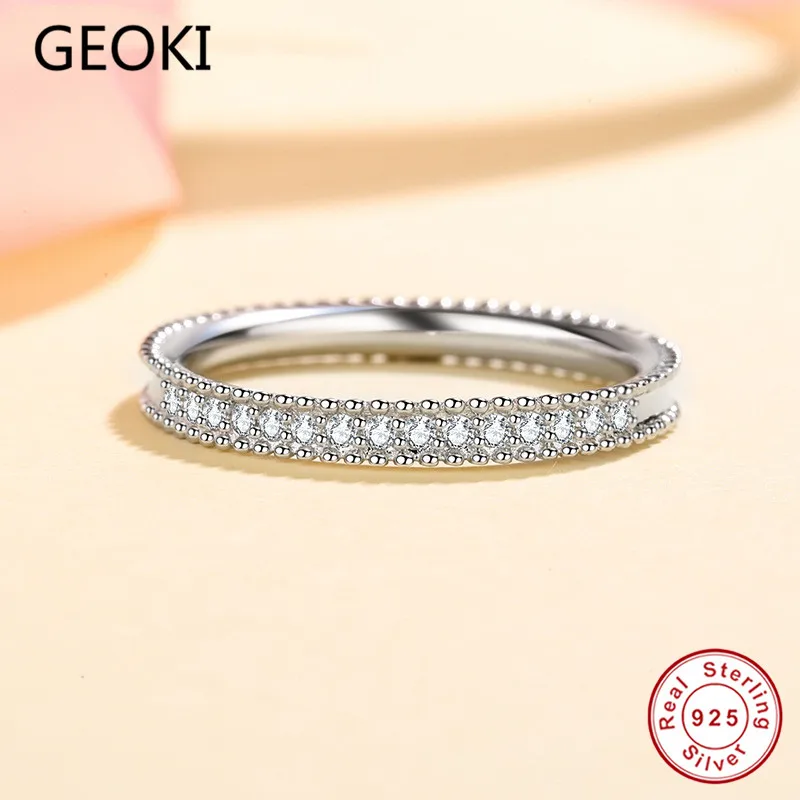 Geoki прошел алмаз Тесты 0,15 компьютерная томография D Цвет VVS1 Круглый Муассанит кольцо 925 пробы серебро Минни микро Кольца с алмазами для Для женщин