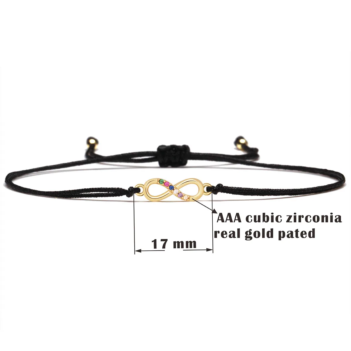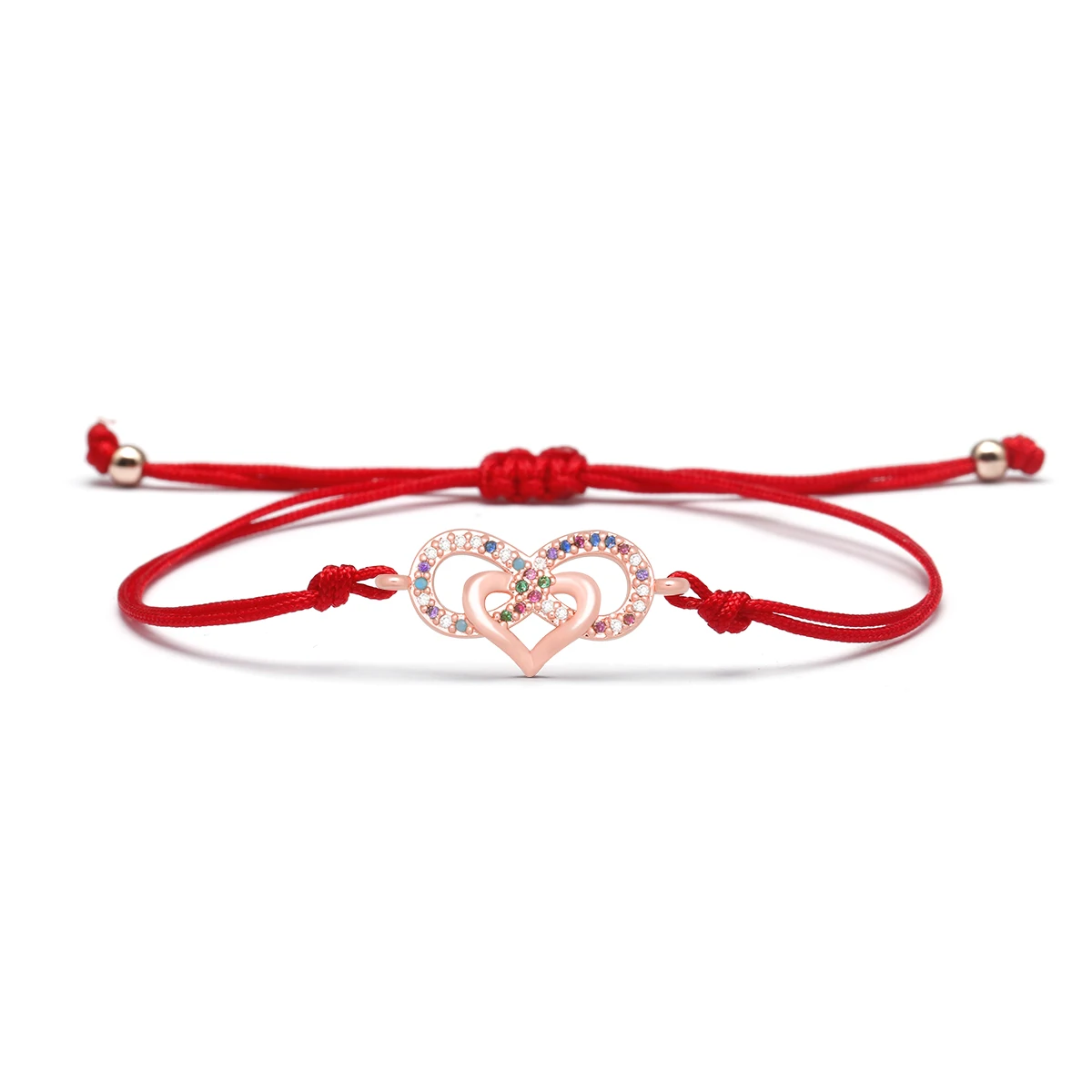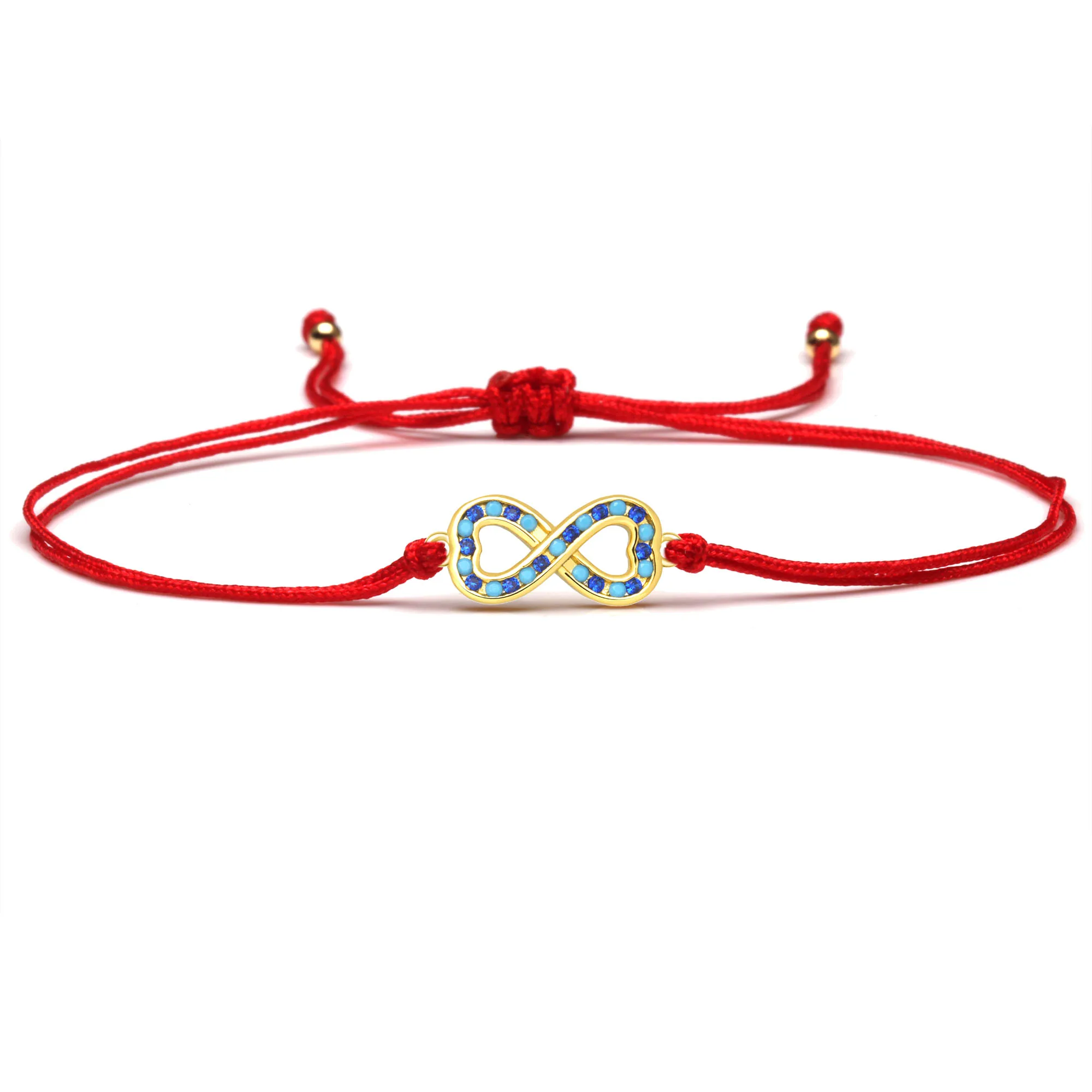 Разноцветный кубический цирконий милый маленький браслет Бесконечность любовь для женщин ручная работа красная веревка удача защита ювелирное изделие подарок