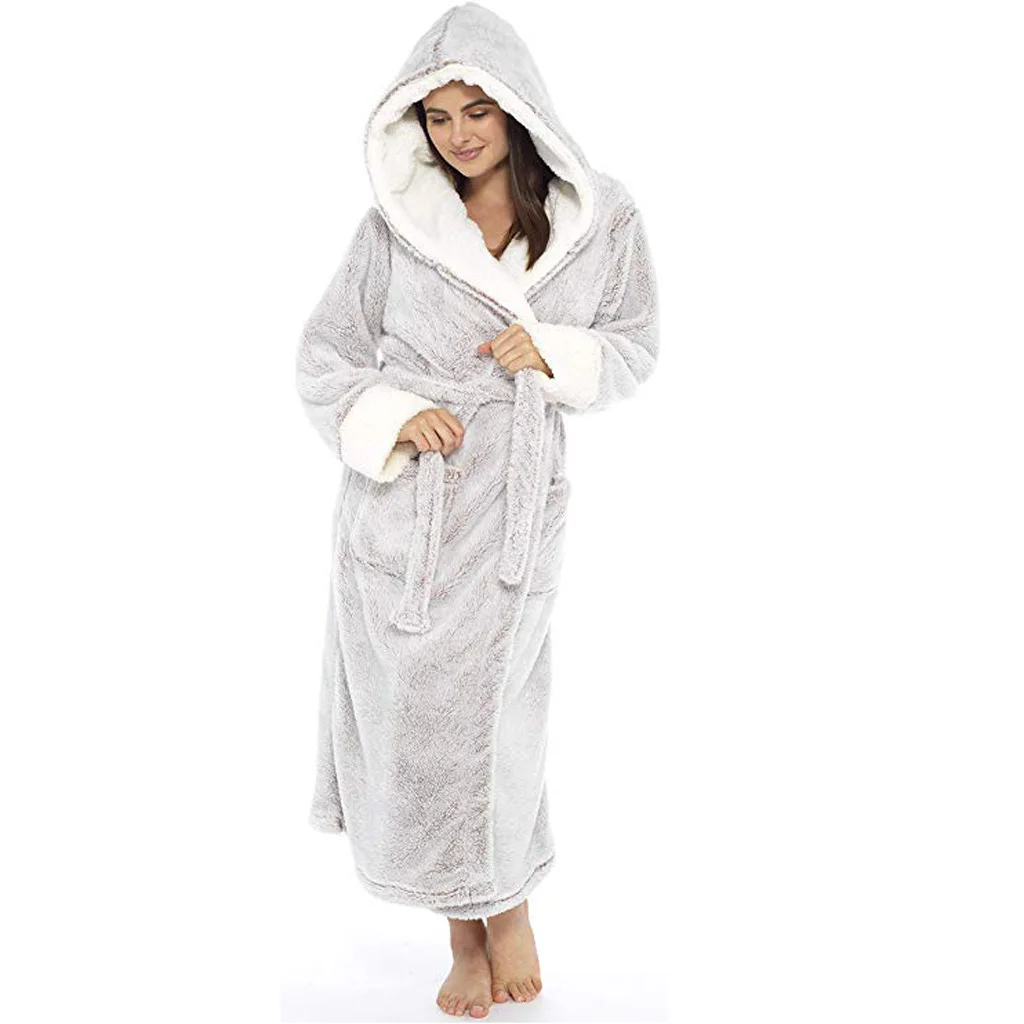Зимний Халат с капюшоном и карманами, флисовый халат, женская одежда для сна, домашняя одежда, детская одежда, длинный халат женский