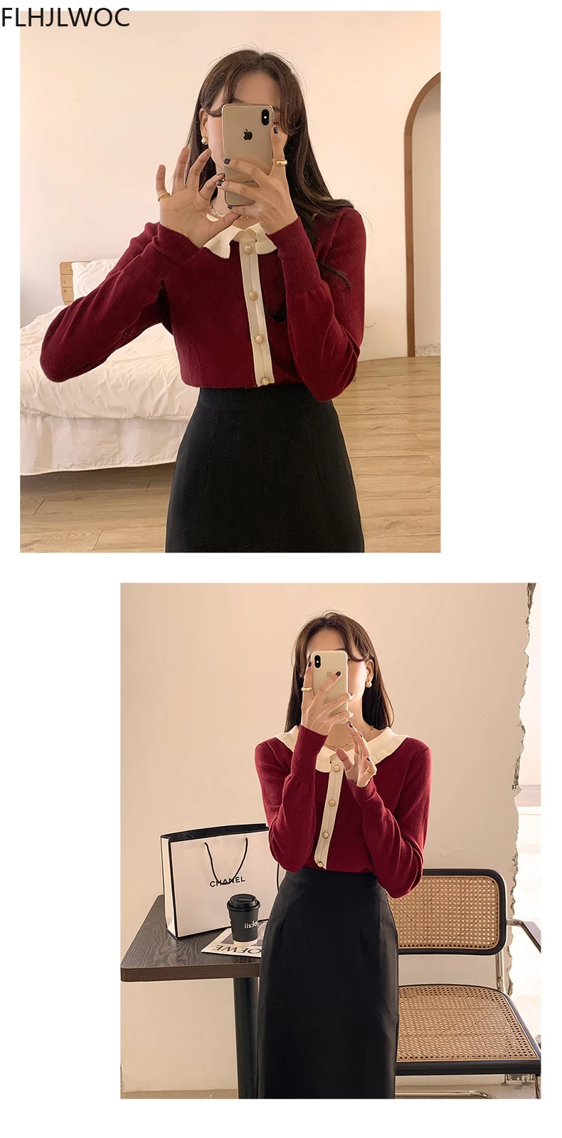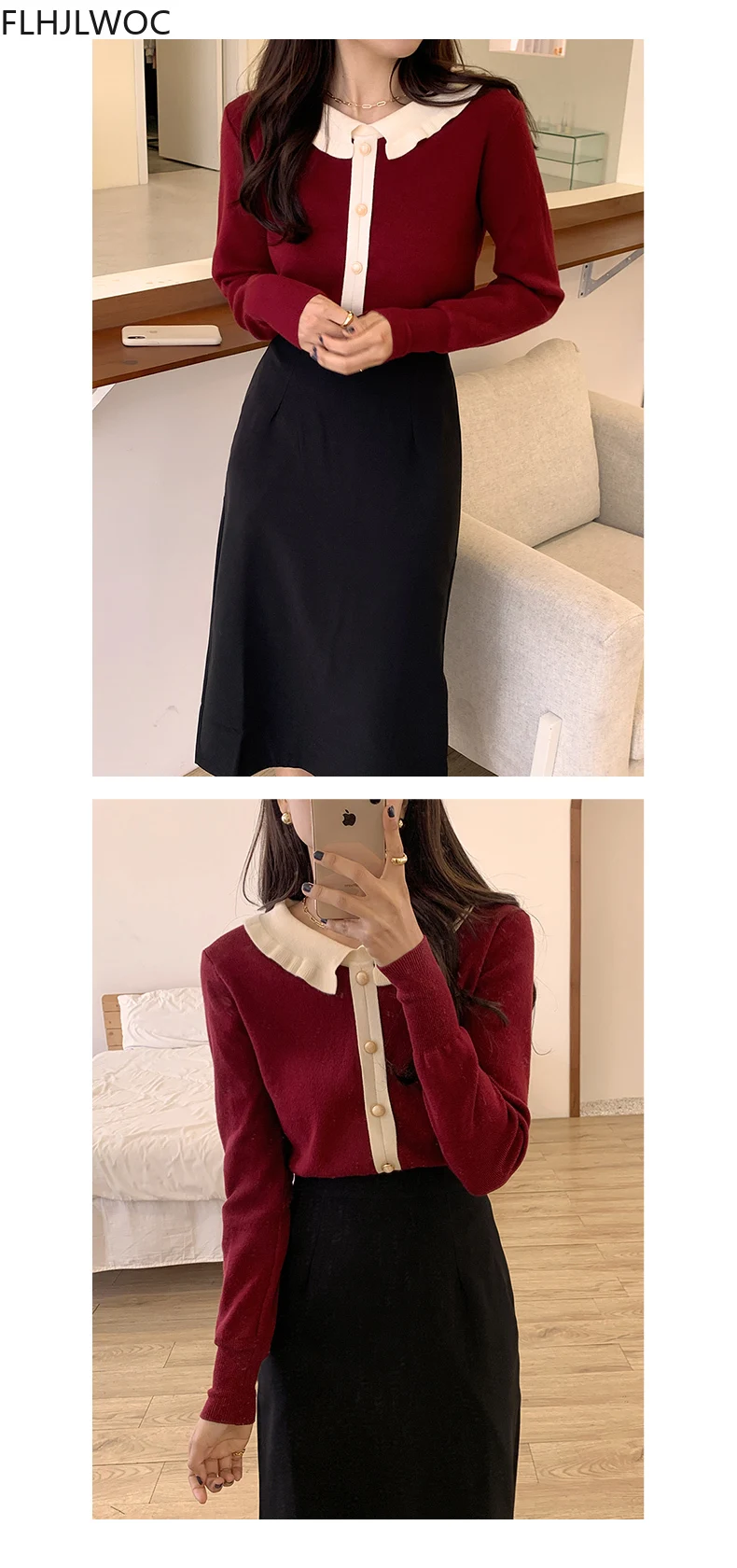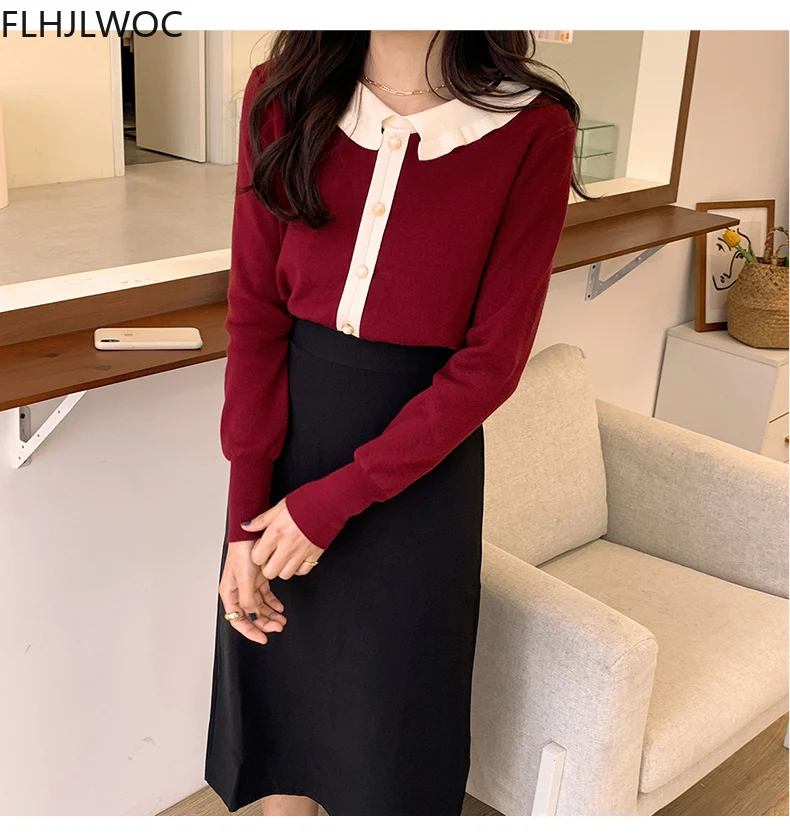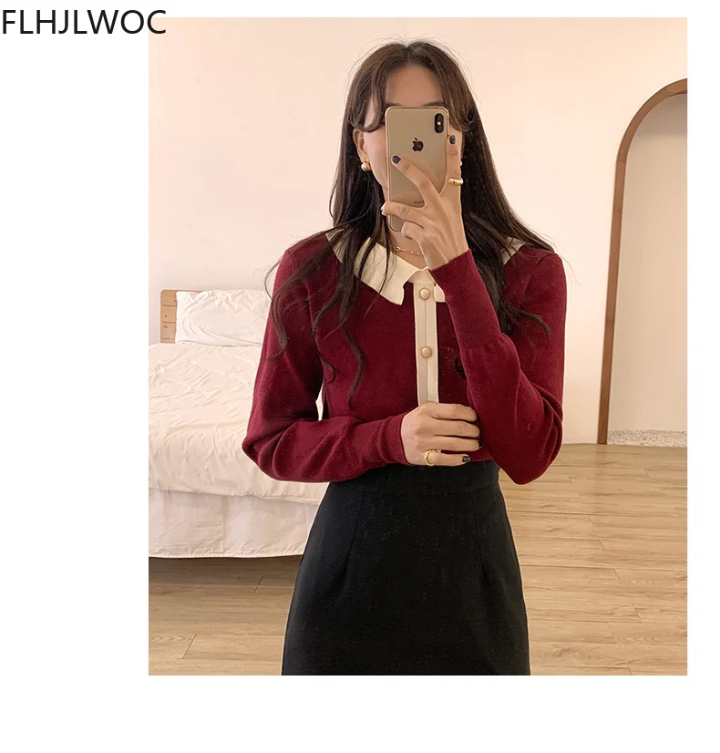 Лидер продаж милые сладкие Топы для женщин с длинным рукавом; Повседневная одежда в стиле пэчворк; Однобортный свитер, Стильный вязаный свитер красного цвета с короткими свитер