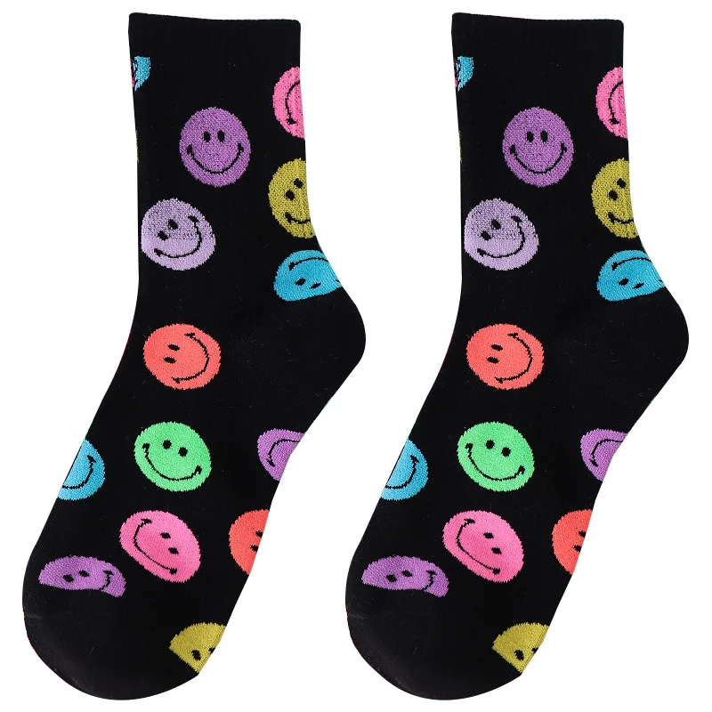 Носки женские, со смайликами, с принтом, в Корейском стиле, в стиле Харадзюку