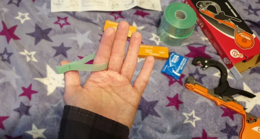 Заказывал с купоном на хорошую скидку. Кто-то писал что продавец такие заказы не отправляет, но мой был отправлен и доставлен в Саратов очень быстро. Упаковано хорошо, замотано зверски, для нашей почты самое то. Сам аппарат - космос. Правда made in Тайвань, дизайн Японский, прям как Iphone. Материал надежный, качественный, нареканий нет. Дополнительно заказал к нему скобы Японские и ленту увеличенного метража на 80м зеленая. В полной зарядке тяжести не почувствовал, жена с тещей приловчились за 5 минут. Щелкает легко, если сжимать вплотную к «клешне». Экономит время и нервы. Подвязка в радость. Хвост ленты после скобы на выполненной подвязке оставляет длиновато, для некоммерческого применения не существенно. Товаром доволен как конь ))) Спасибо.