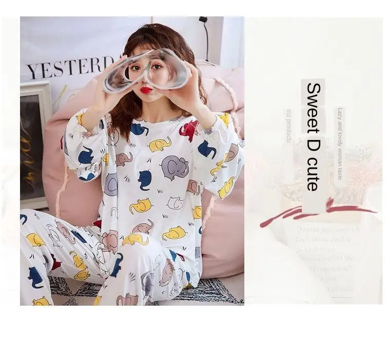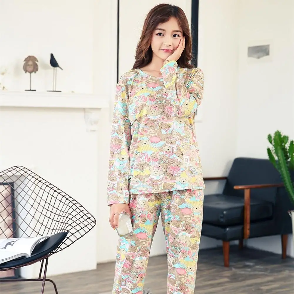 Весенне-осенняя новая Пижама с мультяшным принтом, женский милый костюм с длинным рукавом для школьников, женская пижама, женская одежда для сна для отдыха