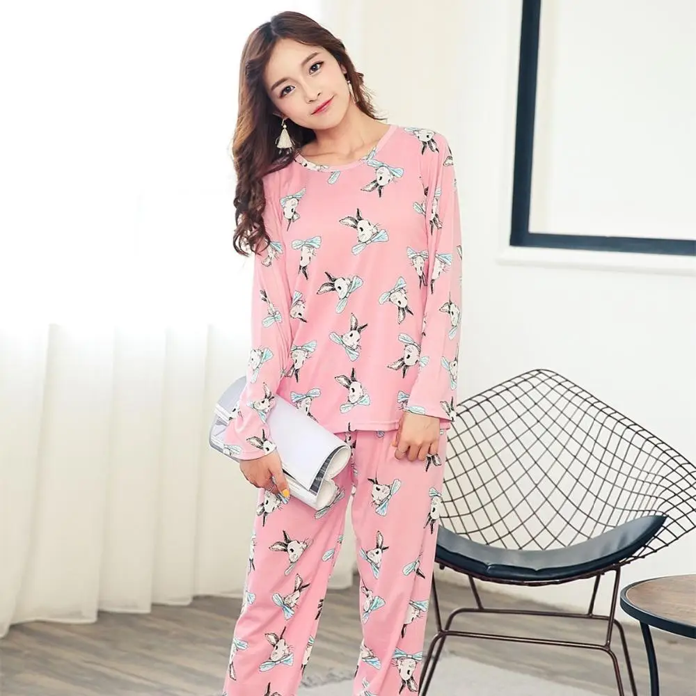 Новые женские пижамы с длинными рукавами и милым рисунком, домашний...