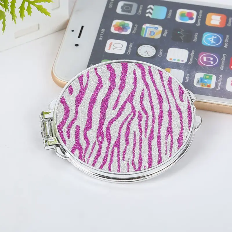 Круглое блестящее мини-зеркало для макияжа компактное складное двойное двухстороннее случайное