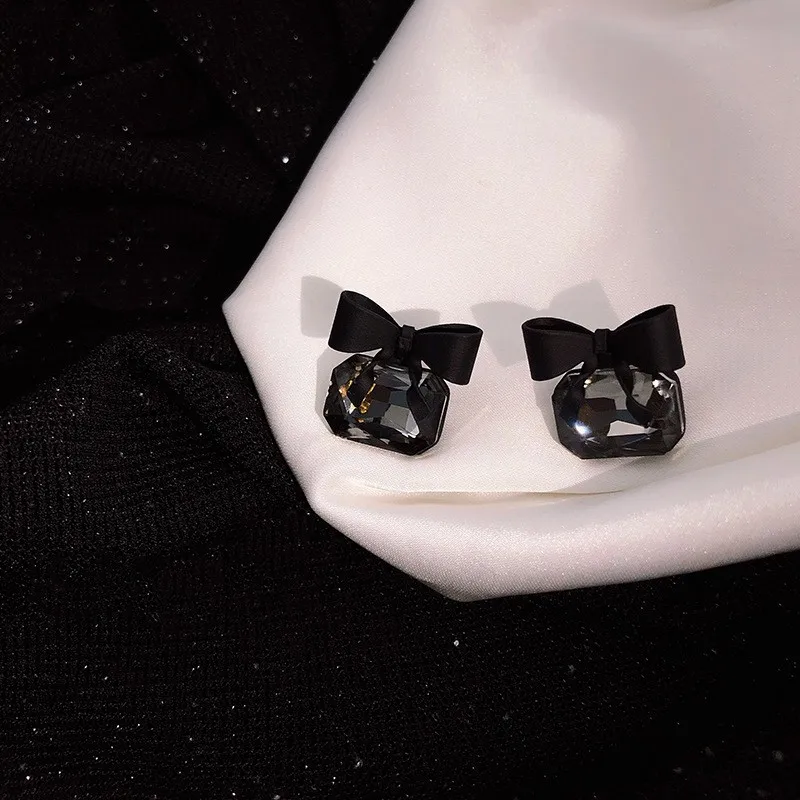 Корейские милые черные женские серьги с бантом, модные блестящие Ге...