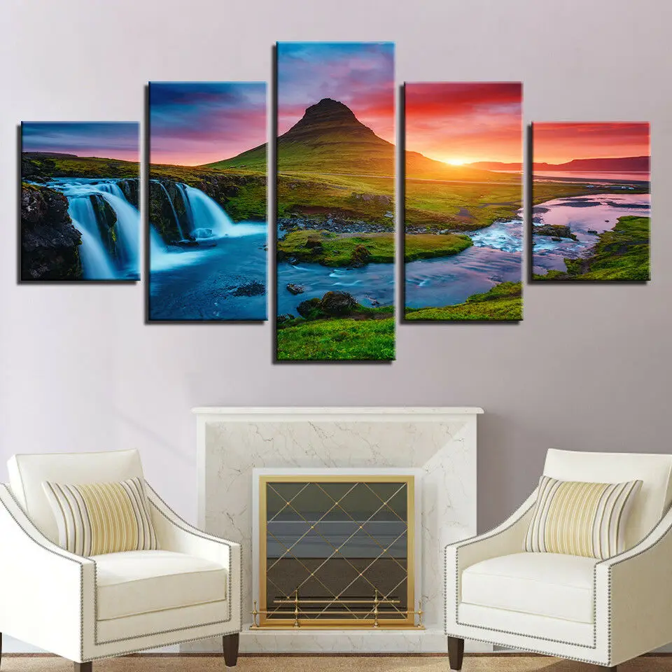 Номер модели5 Piece Poster Modular Waterfall Mountain River Nature Wall Art Canvas
