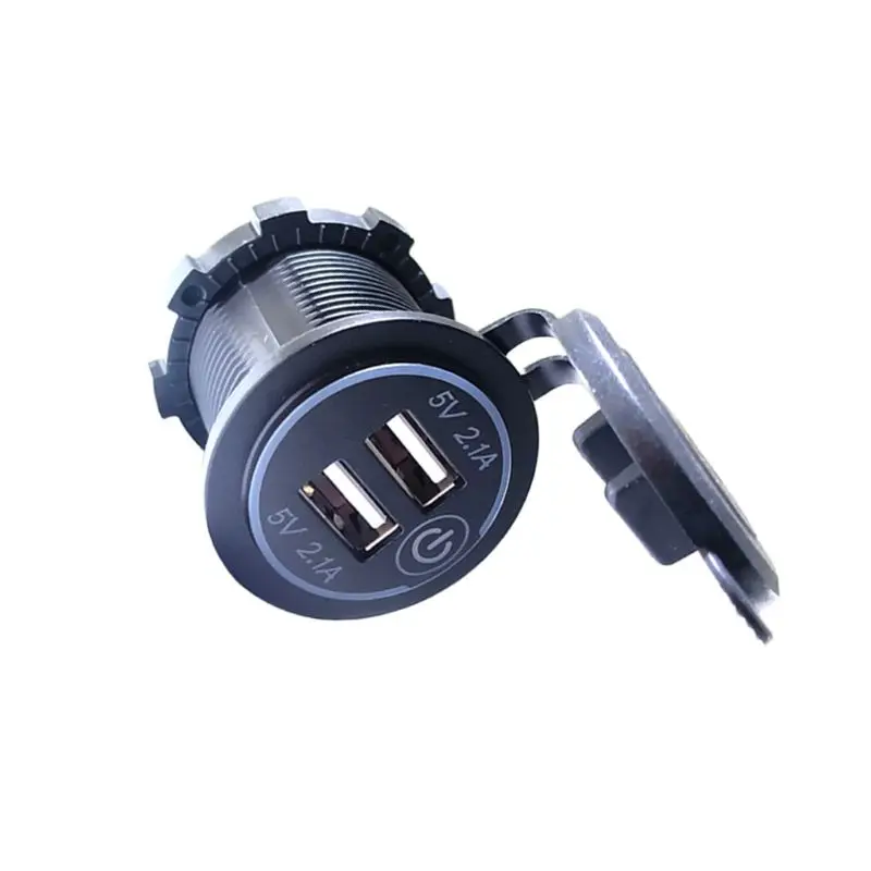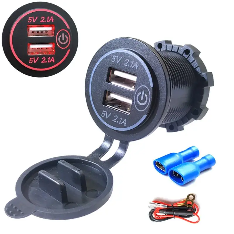 12V 24V Dual USB Автомобильное зарядное устройство 2.1A светодиодный автомобиль Зарядное устройство адаптер с сенсорным экраном вклвыкл переключатель Мощность волоконно оптический кабель для автомобиля лодка мотоцикл Camper