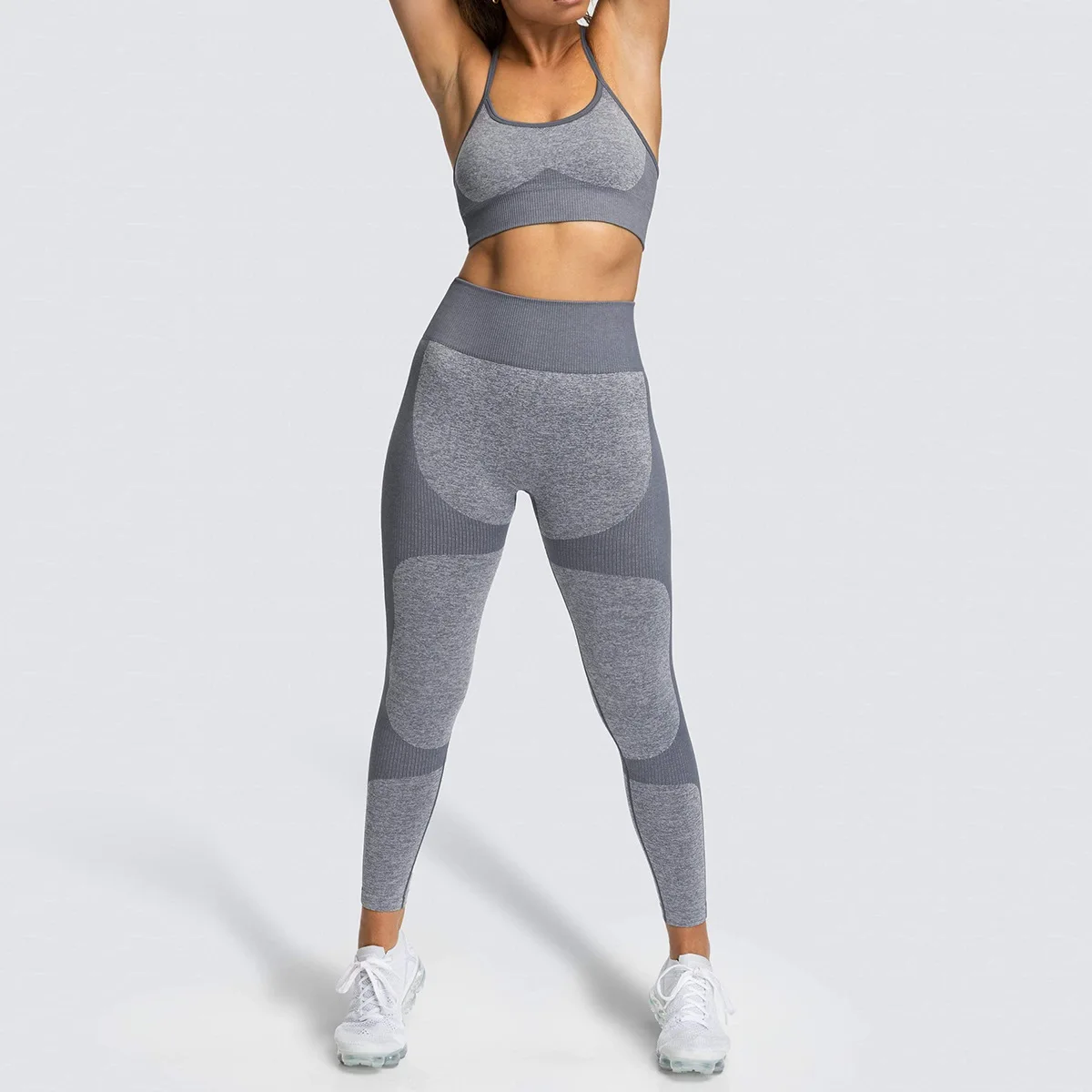 Поможет подкорректировать недостатки бесшовный комплект из 2 частей Фитнес леггинсы спортивный бюстгальтер Для женщин Йога штаны для фитнеса, спортивная одежда, контур Shuffle танцевальный наряд тренировки спагетти