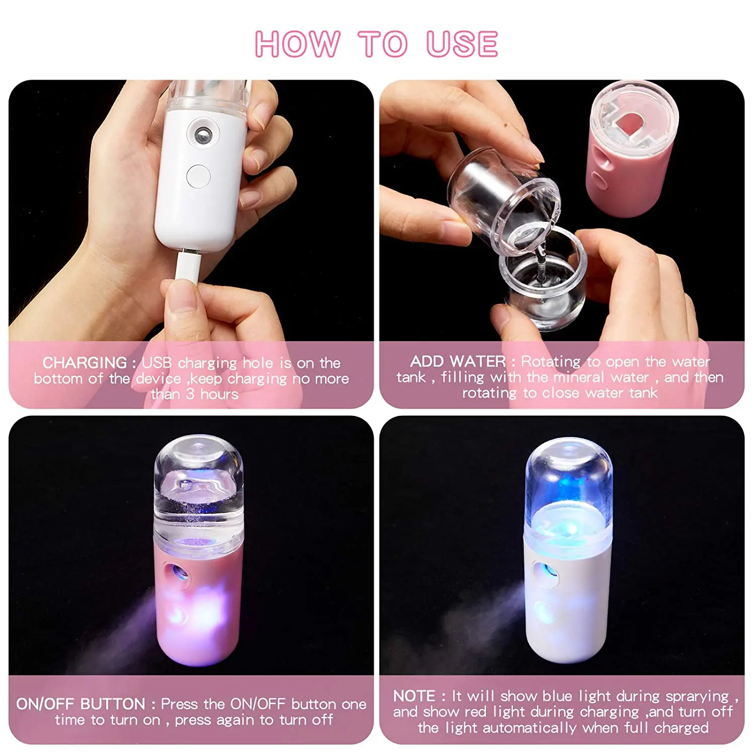 Описание:Этот USB увлажнитель для лица может распылять холодный туман, а частицы тумана малы, что легче впитывать.Usb-пароварка для лица заряжается от USB, вы можете использовать много вещей для его зарядки.Отпариватель для лица маленький, легкий, позволяет легко переносить или хранить его.Распылитель для лица подходит для лица, рук, тела, волос и т. д.Распылитель тумана может эффективно пополнять сухую кожу и регулировать водный и масляный баланс кожи.Спецификация:Емкость аккумулятора: 550 мАч (встроенный)Количество распыления: 1,25-1,45 мл/мин..Емкость контейнера для воды: 30 мл.Распыленные частицы: 0.3мкм.Время зарядки: 2-3 часа.Цвет: розовый, белый, желтый, зеленый.Размер: 35x35x103мм.ПримечаниеИз–за разных компьютерных разрешений может быть небольшое цветовое искажение.Возможны незначительные погрешности из-за различных ручных измерений.Посылка включает в себя:1x USB распылитель для лица (встроенный аккумулятор)1x USB кабель