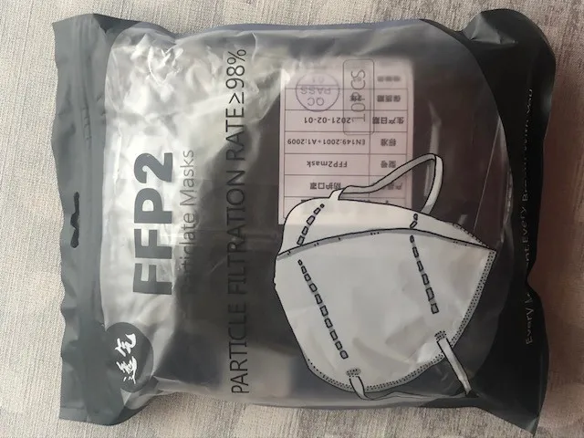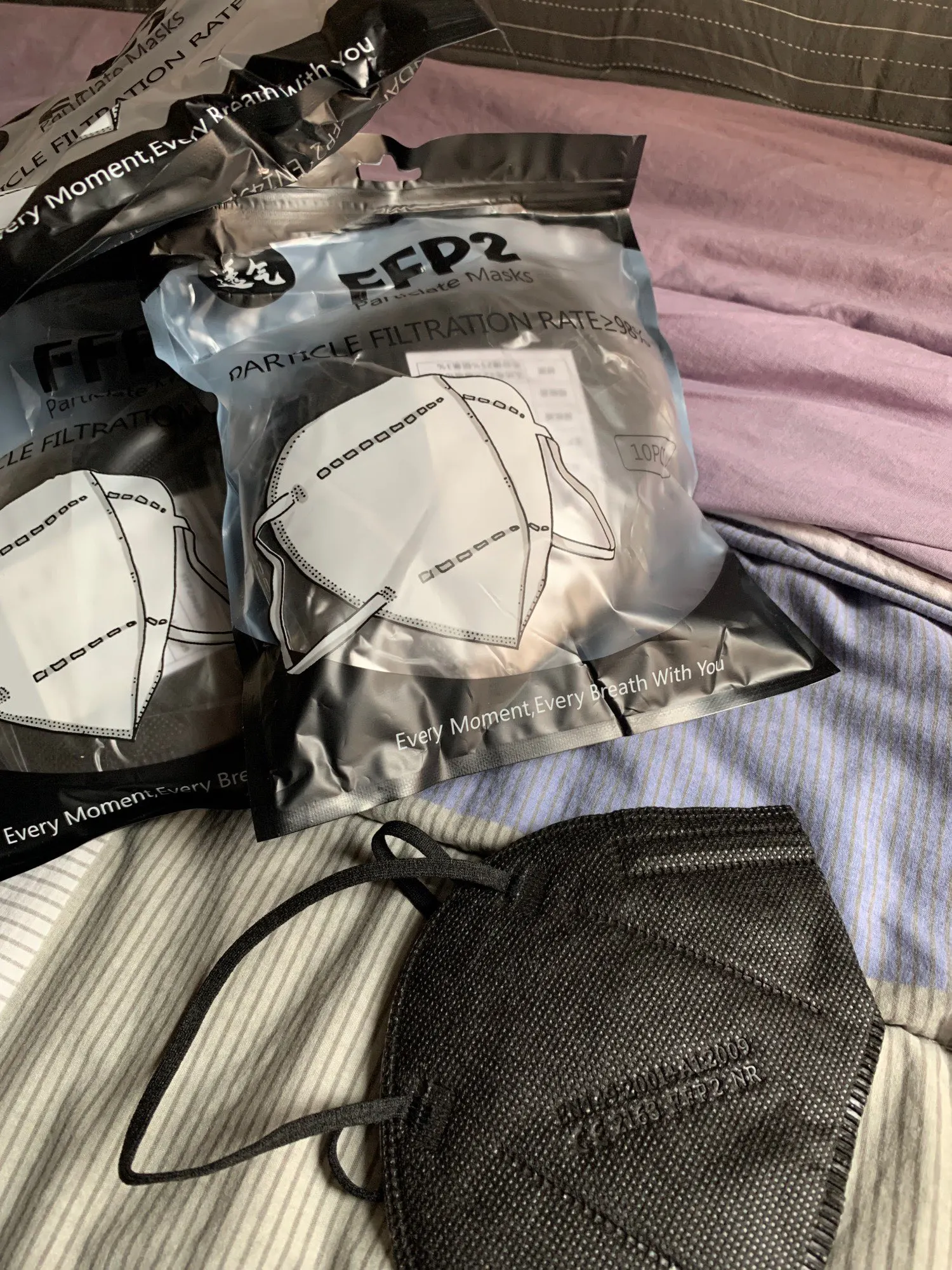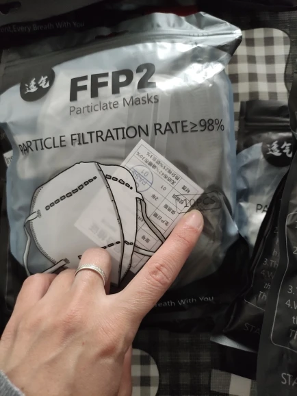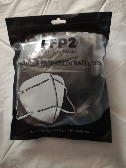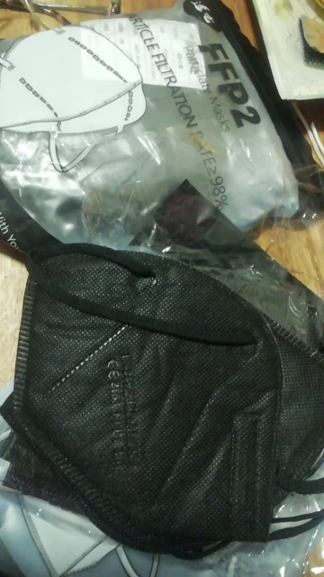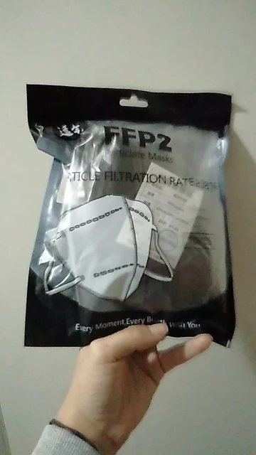 Куплен 17 февраля и получен в Севилье (Испания) 03 марта. Очень быстро. Они поставляются с печатью CE с низким освещением на каждой маске (что-то трудно найти в черных, которые обычно ставят только kn95). Удобство регулировки и ушей.