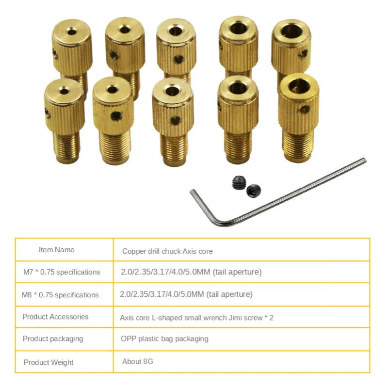 Патрон меди для дрели M7M8, зажим, микро сверло, крепление, латунный вал электродвигателя для мини-дрели 0,7-5 мм, многофункциональный инструмент с гаечным ключом