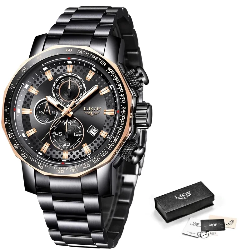 Часы наручные LIGE Мужские кварцевые, брендовые Роскошные спортивны...