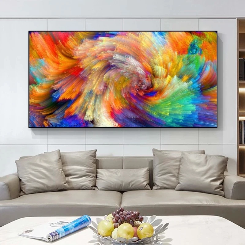 Абстрактные настенные художественные картины радужного цвета, Масля...