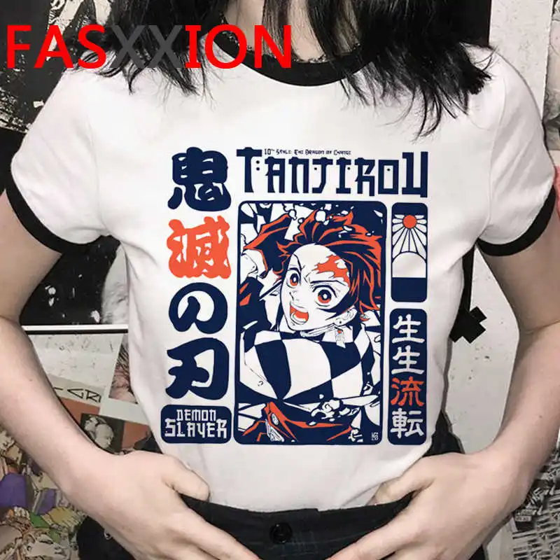 Футболка женская с изображением рассекающего демонов, аниме футболк...