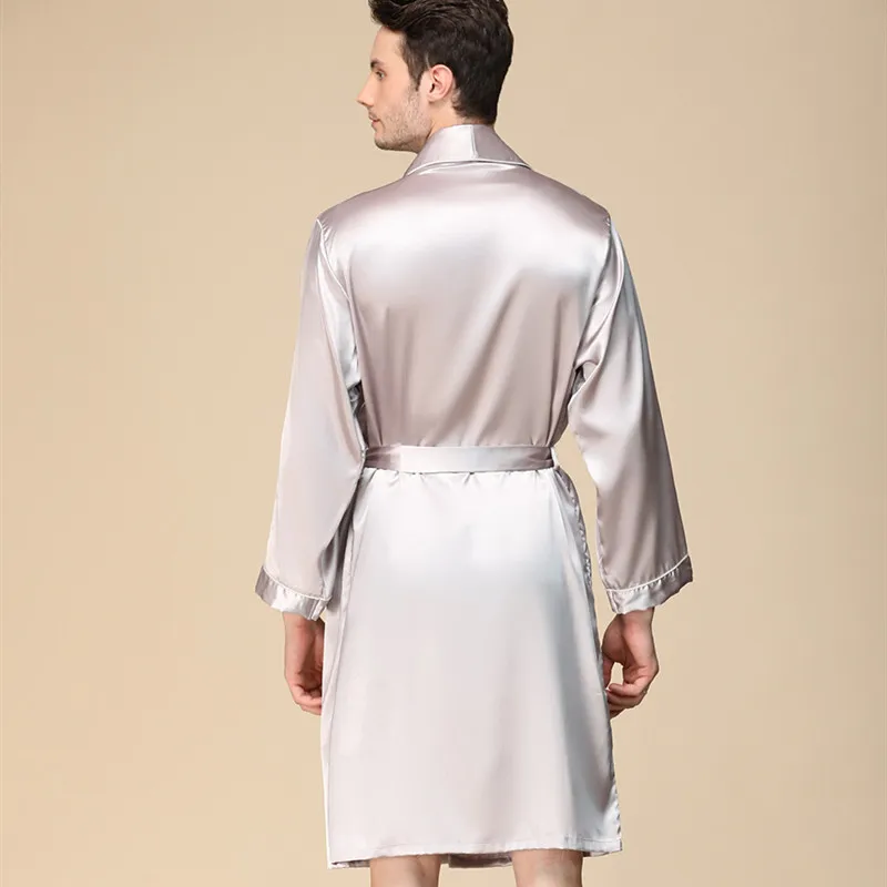 Мужские шелковые атласные халаты, пижама с длинным рукавом, однотон...