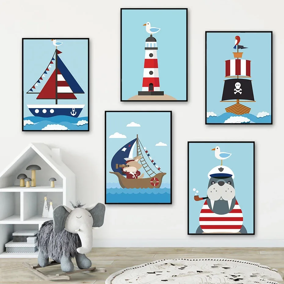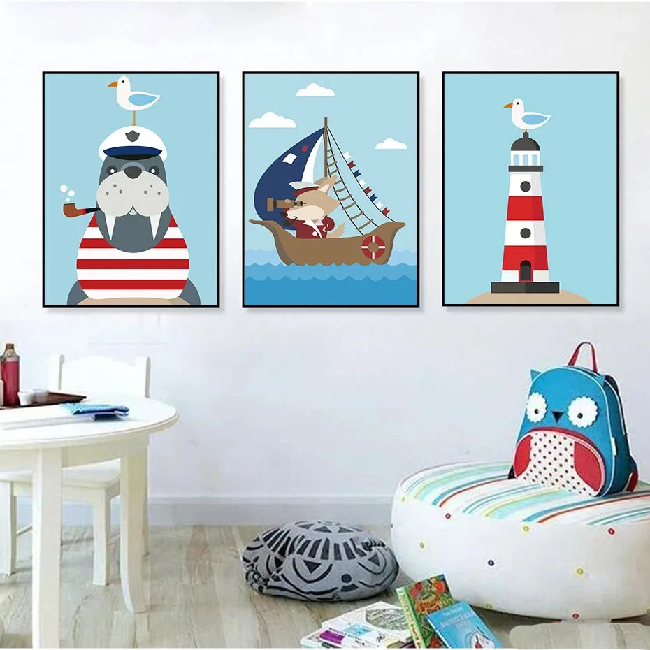 Простой милый плакат в стиле морского моряка фотография Настенная картина для детской комнаты домашний декор фрески