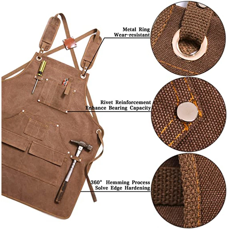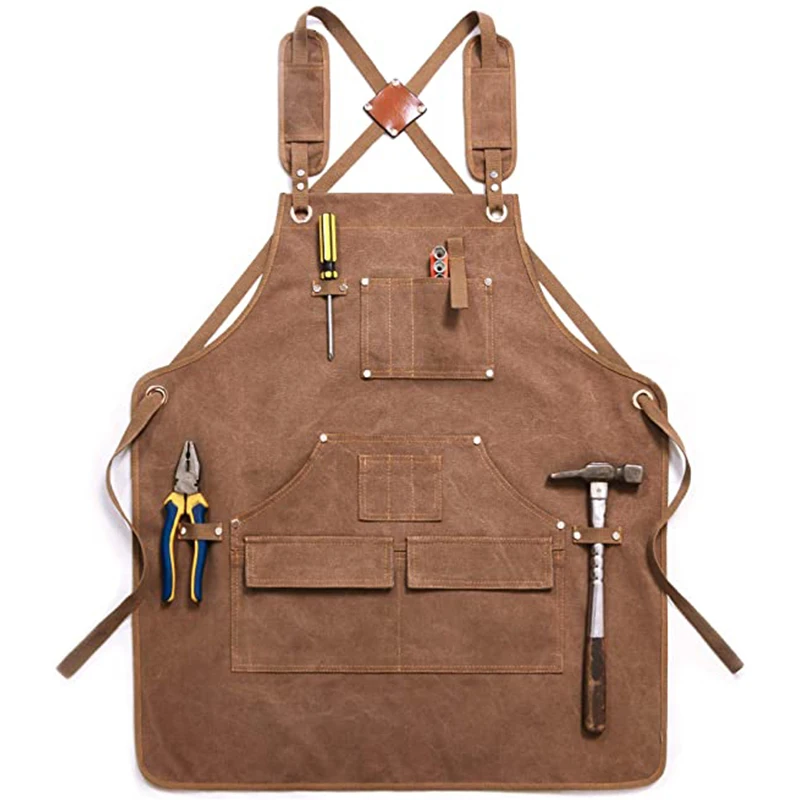 Фартук унисекс из вощеной ткани, с карманами для инструментов, регулируемые ремни для покраски по дереву