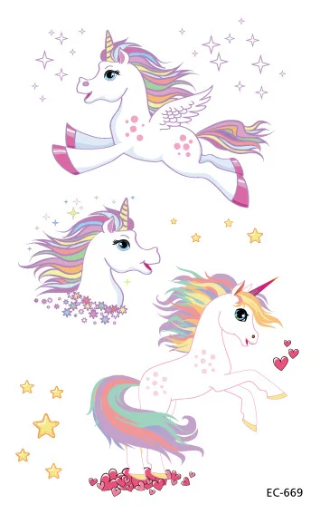 Мультяшная Татуировка единорога для детей, милые поддельные татуировки для детей, Временные татуировки, водонепроницаемые временные наклейки для тела
