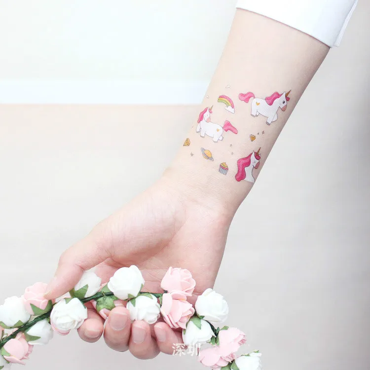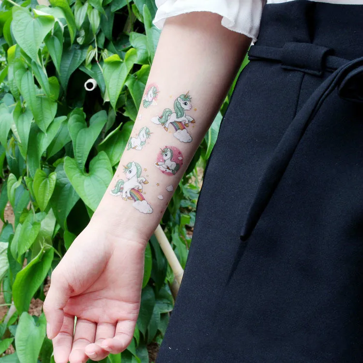 Мультяшная Татуировка единорога для детей, милая имитация татуировки, Детская временная татуировка, боди-арт, водостойкая временная татуировка, наклейка