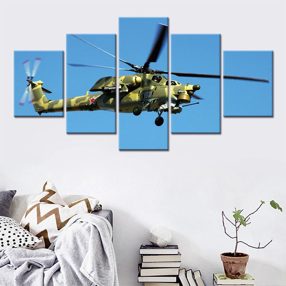 Модульная картина, 5 шт., постер на холсте, с изображением самолета, вертолета, войны, боя, Настенная картина, Декор для дома