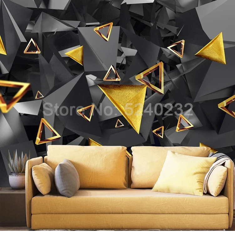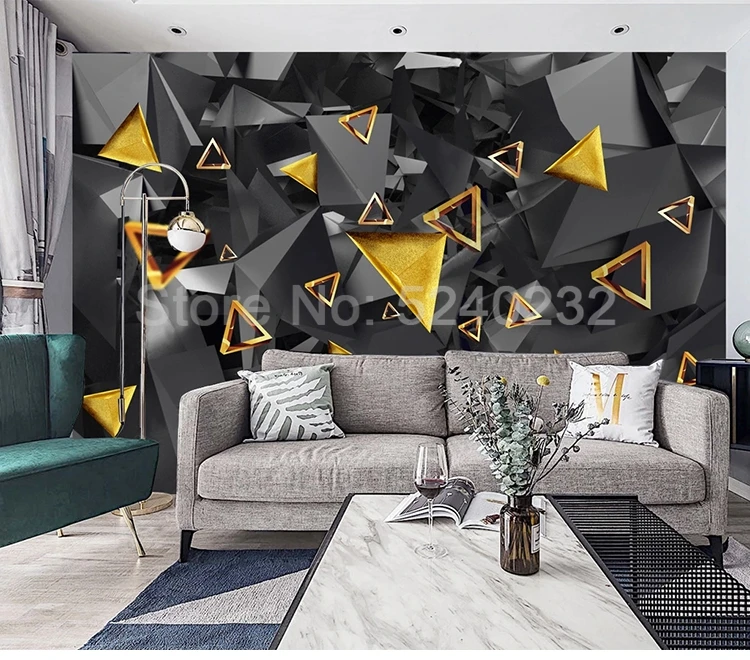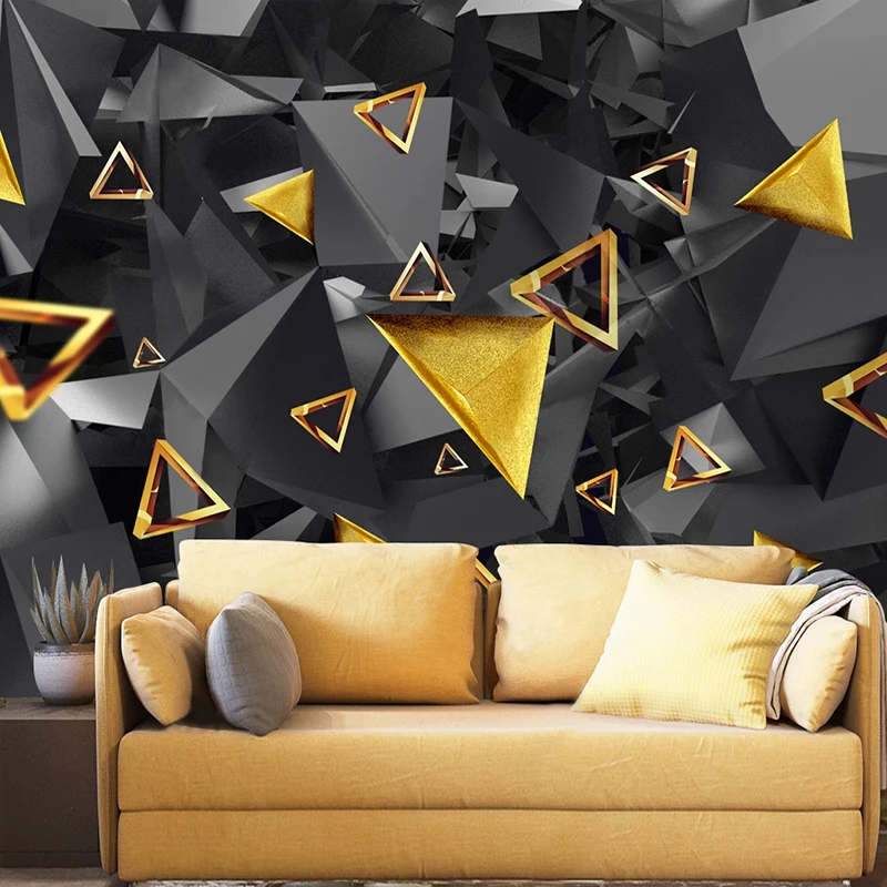 Настенная живопись на заказ современные 3D стереоскопические абстрактные золотые черные геометрические обои для гостиной диван ТВ фон