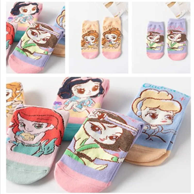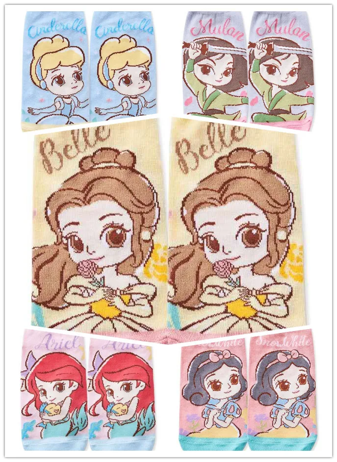 Носки для родителей и детей, хлопковые носки с изображением Белоснежкирусалкипринцессы жасмина, спортивные милые повседневные носки для девочек