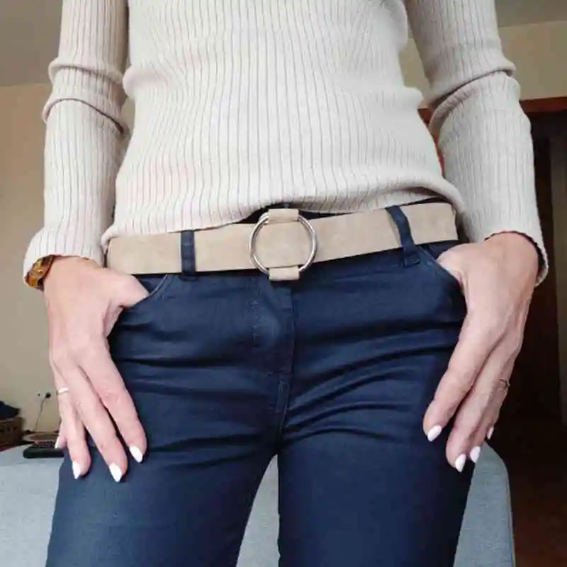 Ремень женский с круглой пряжкой, универсальный модный пояс с метал...