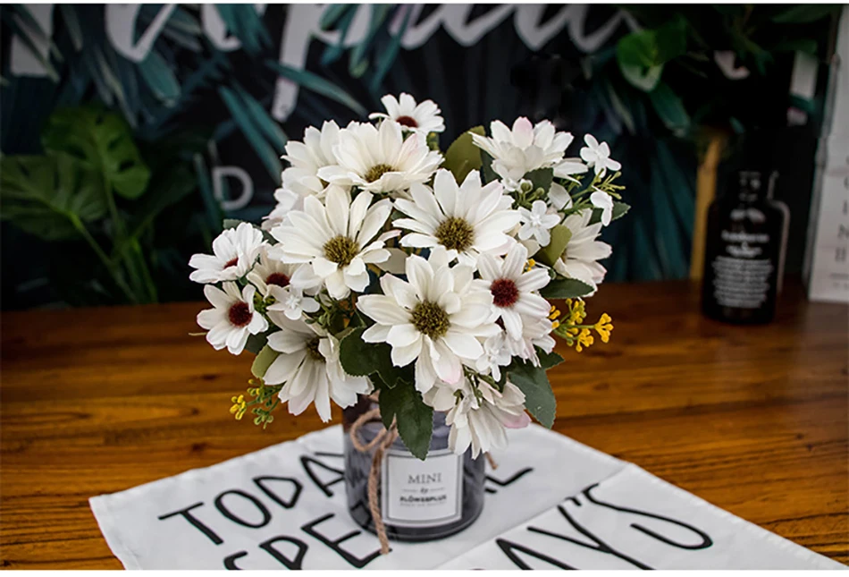 Искусственные хризантемы белых цветков, 21 головка, для праздника, свадьбы, магазина, сада, шёлковые цветы для украшения ручной букет, искусственное растение