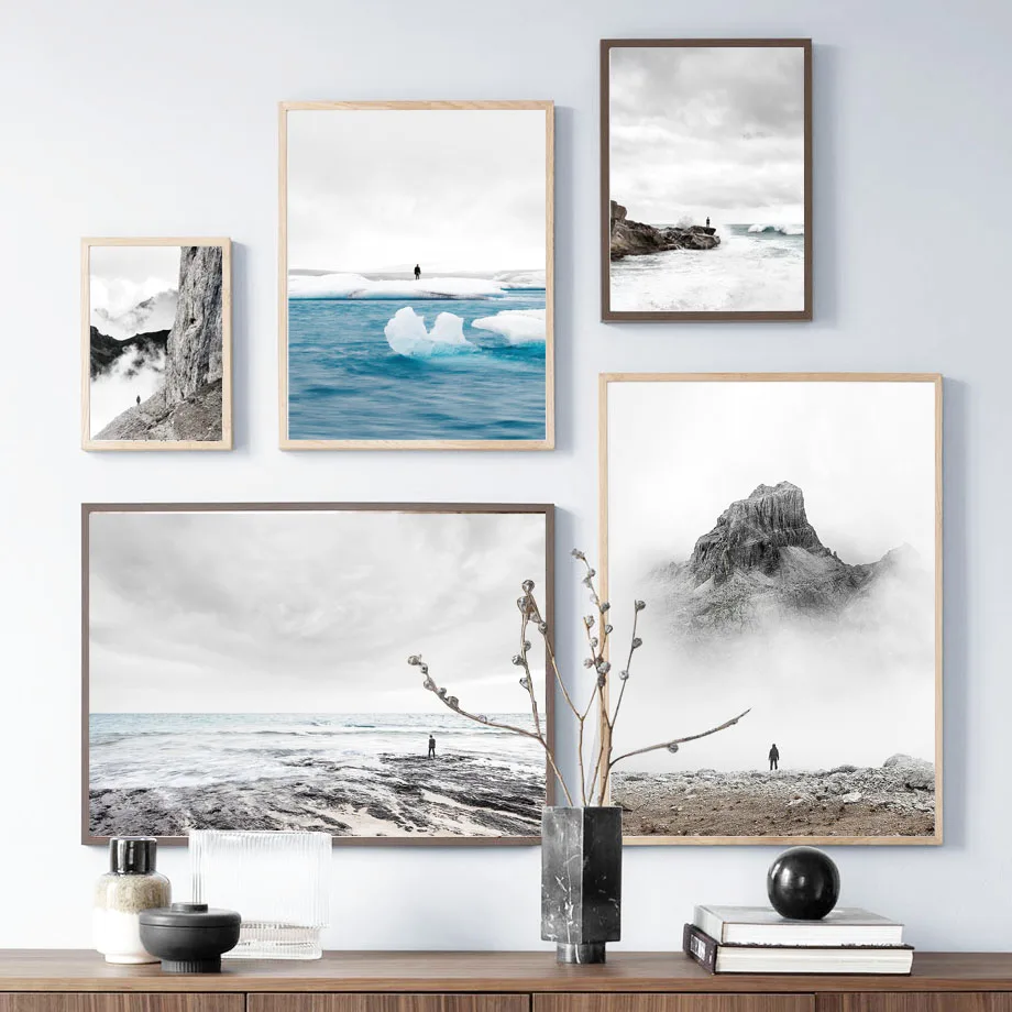 Скандинавский пейзаж, Маунтин, облако, холст, живопись, настенные постеры на Лофт, бескаркасные принты для дома, дизайн картины для интерьера