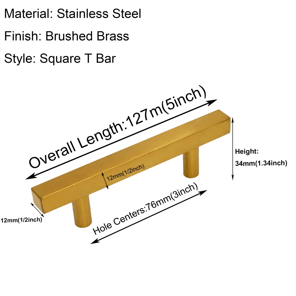 Золотые ручки для кухонного шкафа, комод, ящики, ручки для дверей шкафов, 2,5 7,5 дюйма, Т-образные ручки из нержавеющей стали, фурнитура, 30 упаковок