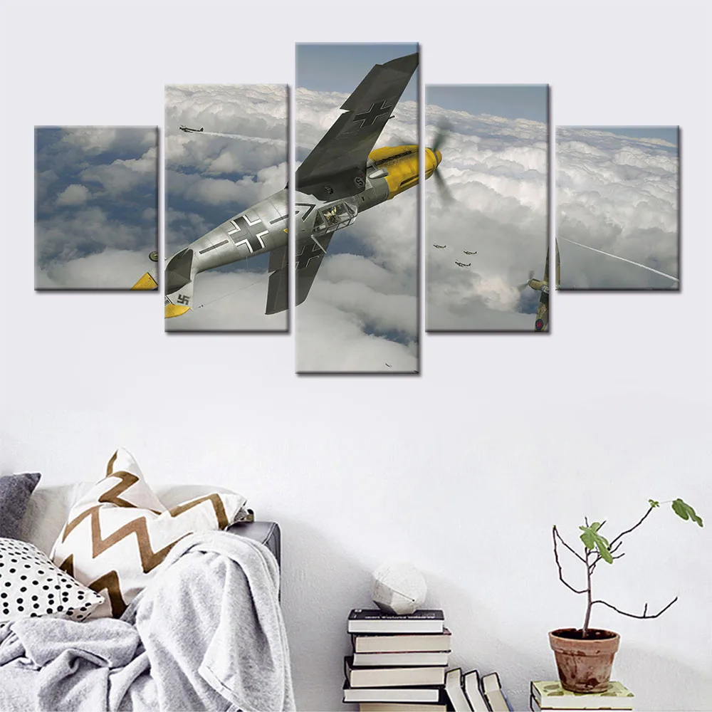 Модульная 5 шт. самолет вертолет военный бой плакат на холсте Печать, Картина Настенная картина Печать Декор для дома