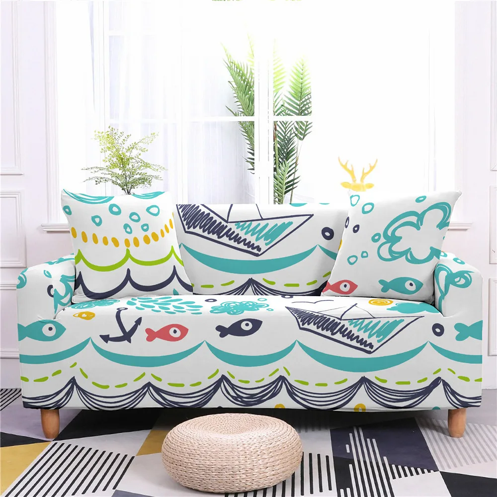 Эластичные Чехлы для дивана с принтом для гостиной, полиэстеровый ч...