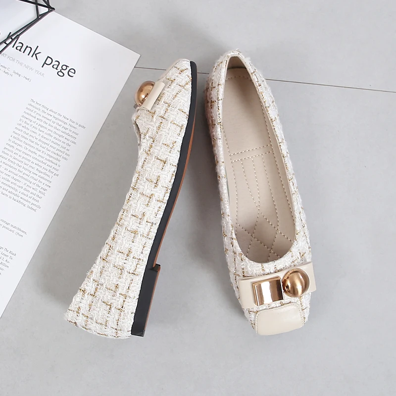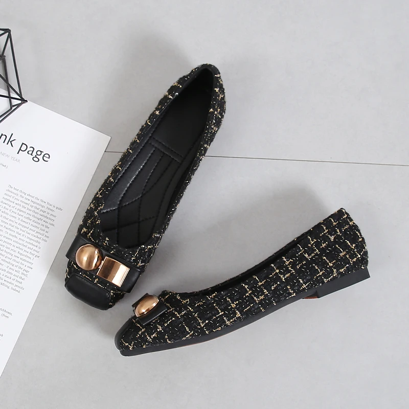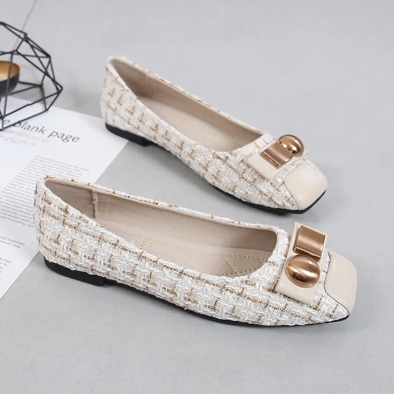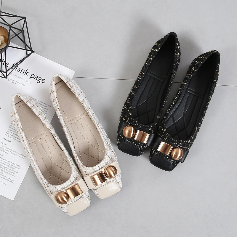Туфли на плоской подошве с квадратным носком; Женские лоферы без застежки; Удобные балетки; Туфли на плоской подошве с металлическими пуговицами; Размеры 35-43; Zapatillas Mujer