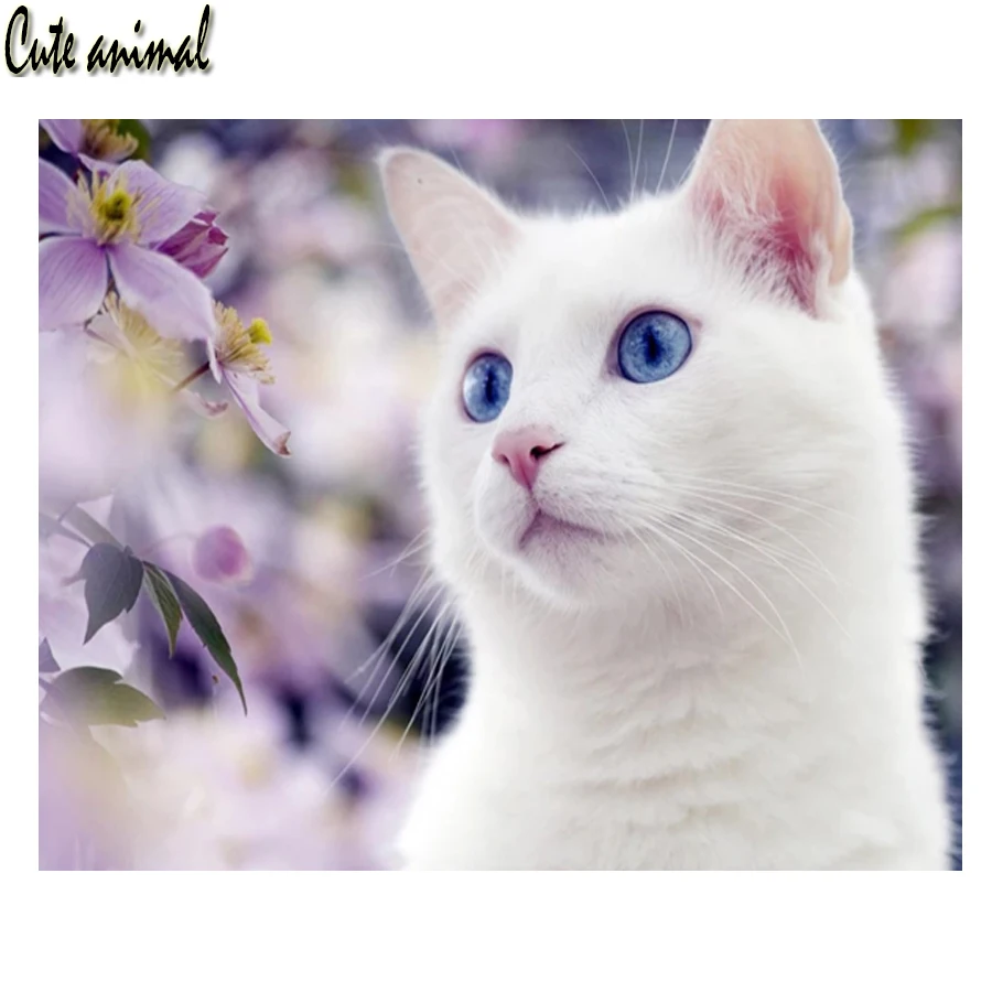 Алмазная вышивка с милым котенком, Набор для вышивки крестиком, мозаика 5D сделай сам, набор для алмазной живописи, вышивка с изображением белого кота, украшение 2021