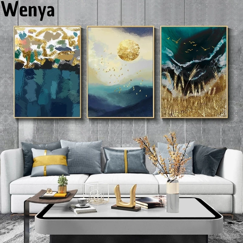 Абстрактный настенный постер пшеничное поле солнце волна пейзаж на холсте Современная картина для гостиной художественная картина для украшения дома