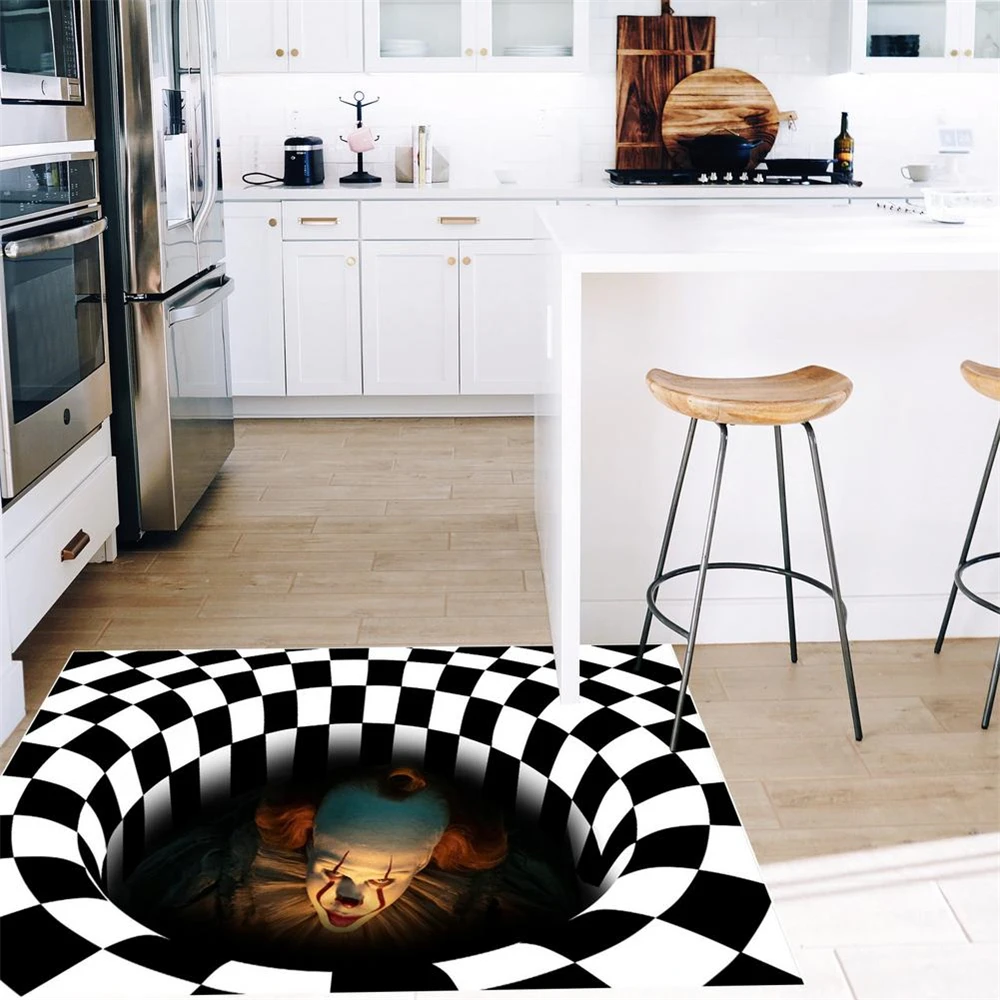 Коврик с рисунком 3D Vision, противоскользящий ковер с рисунком на Хэллоуин, черно-белый, украшение для рождественской вечеринки