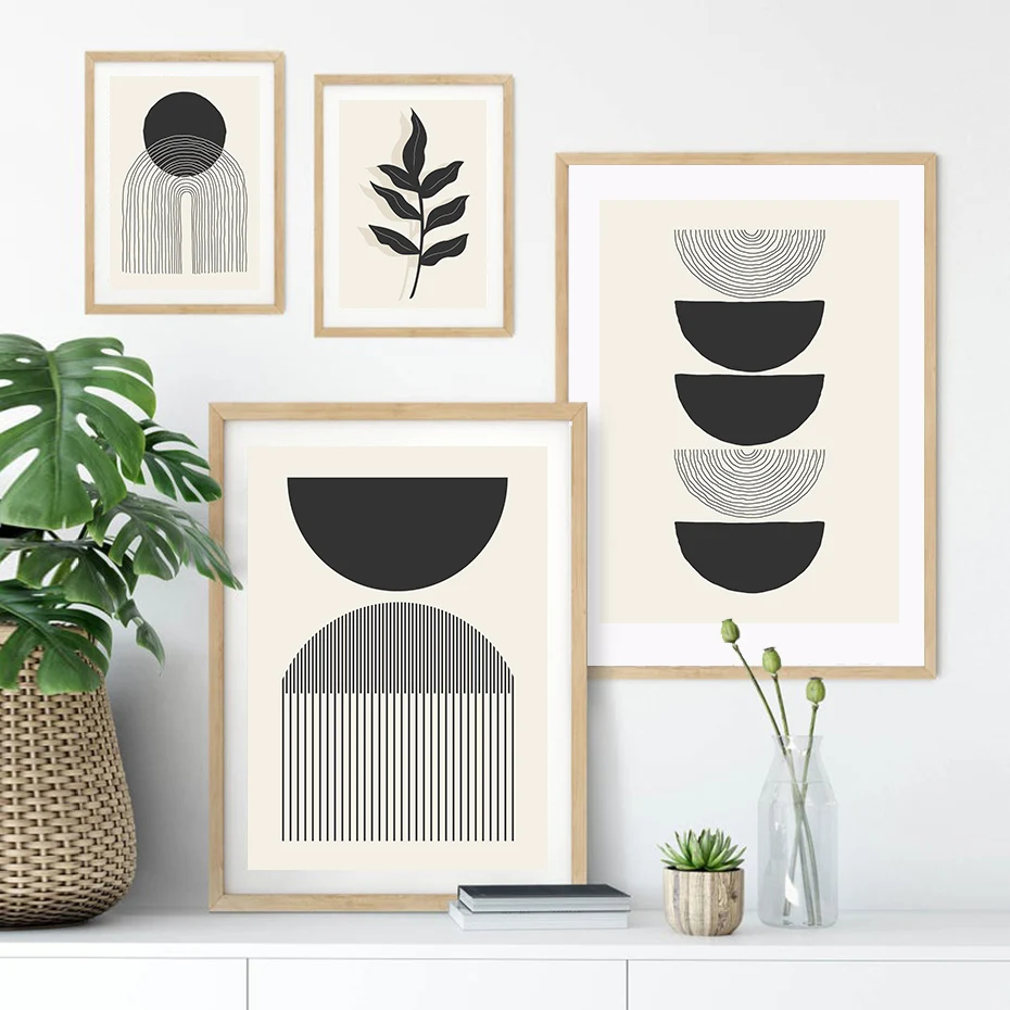 Абстрактные линии Черно-белые плакаты минималистский современный хо...