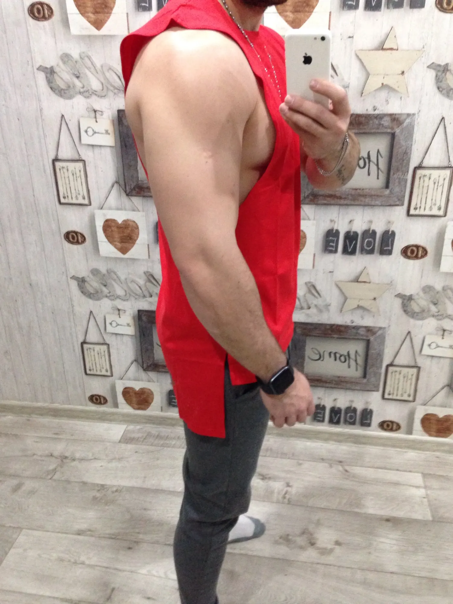 Майка мужская хлопковая для спортзала, тренировочная рубашка без рукавов с вырезами и отверстиями для фитнеса, бодибилдинга и воркаута