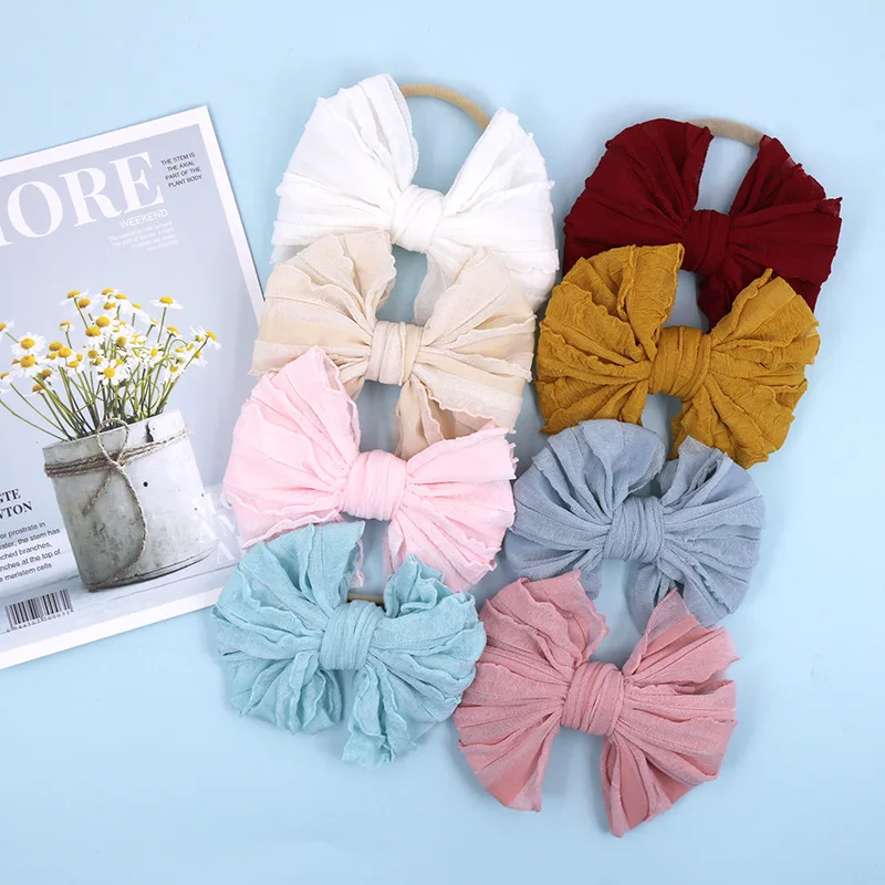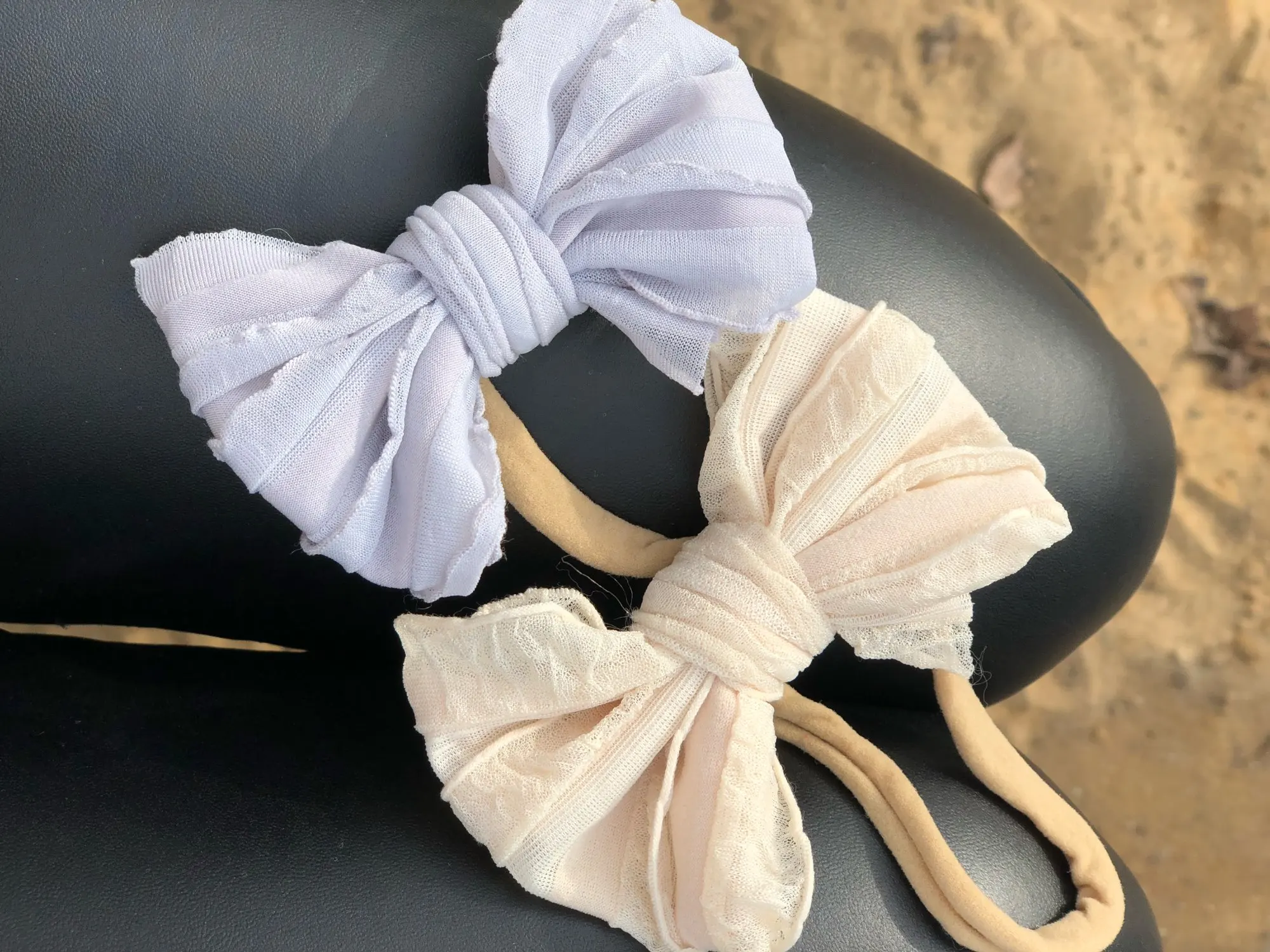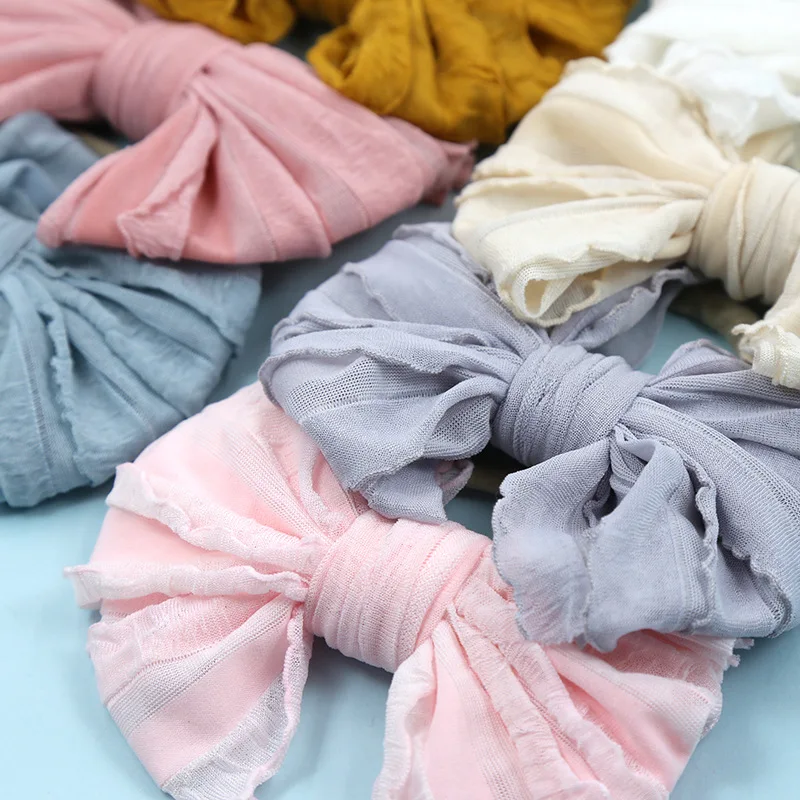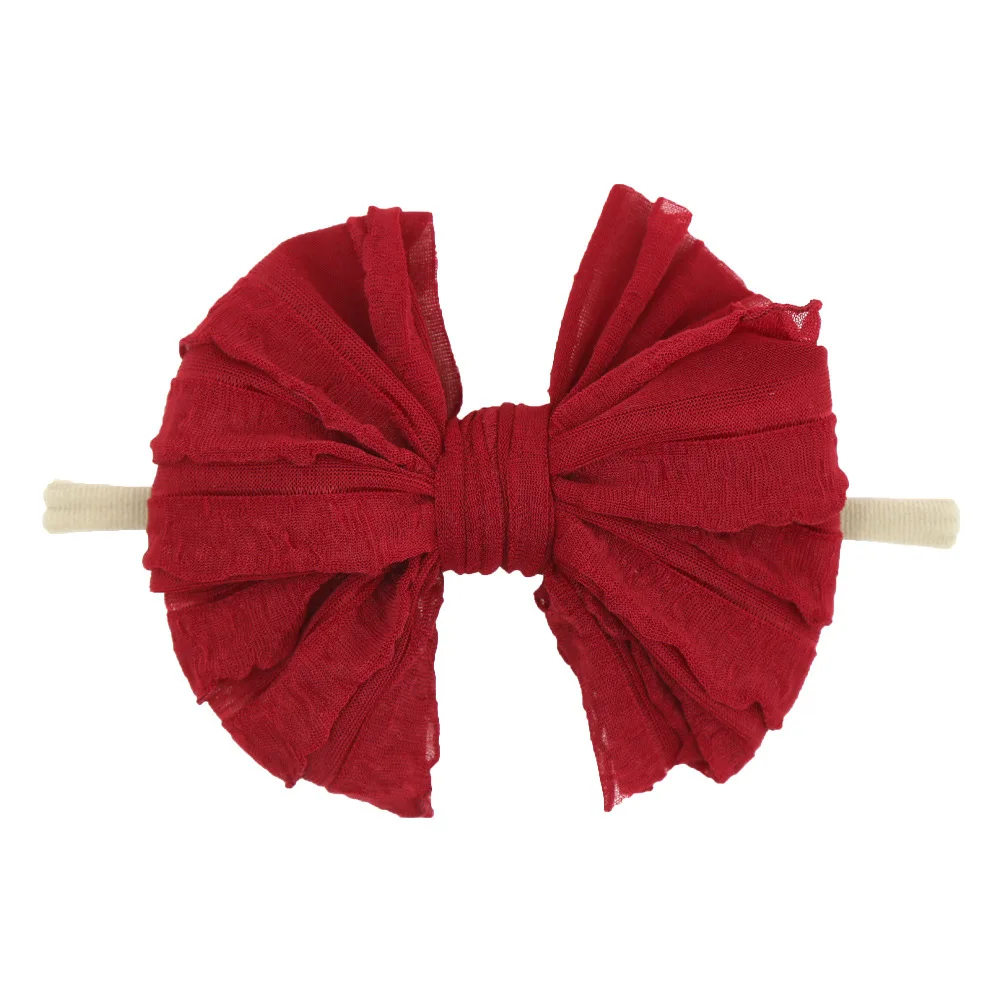 Повязка на голову для новорожденных девочек, эластичная, с кружевным бантом