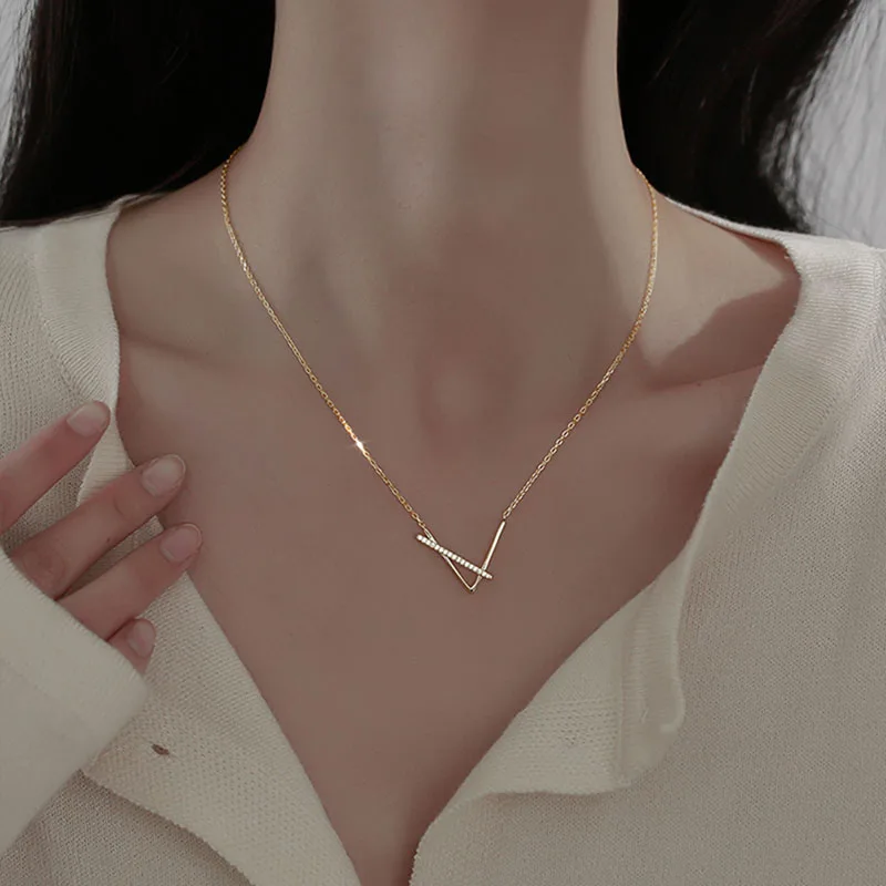 Ожерелье V-образной формы для женщин из стерлингового серебра 925 пробы, геометрический крест, цепочка до ключиц, ожерелье, ювелирные изделия, подарки