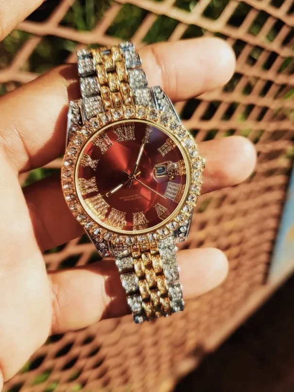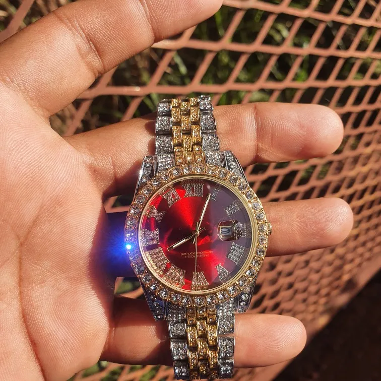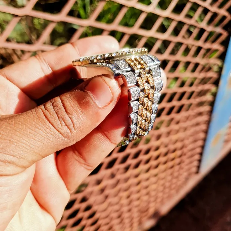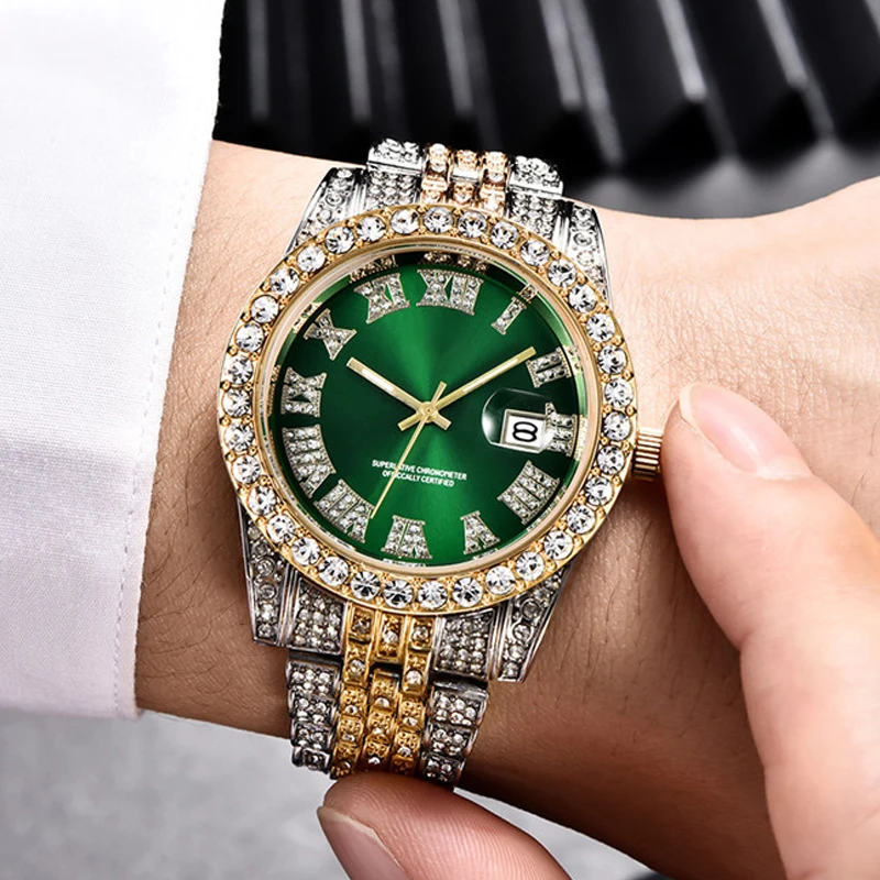Бриллиант ААА Часы мужские в стиле хип-хоп, роскошные брендовые золотистые аналоговые кварцевые уникальные мужские наручные часы Movt, мужские наручные часы