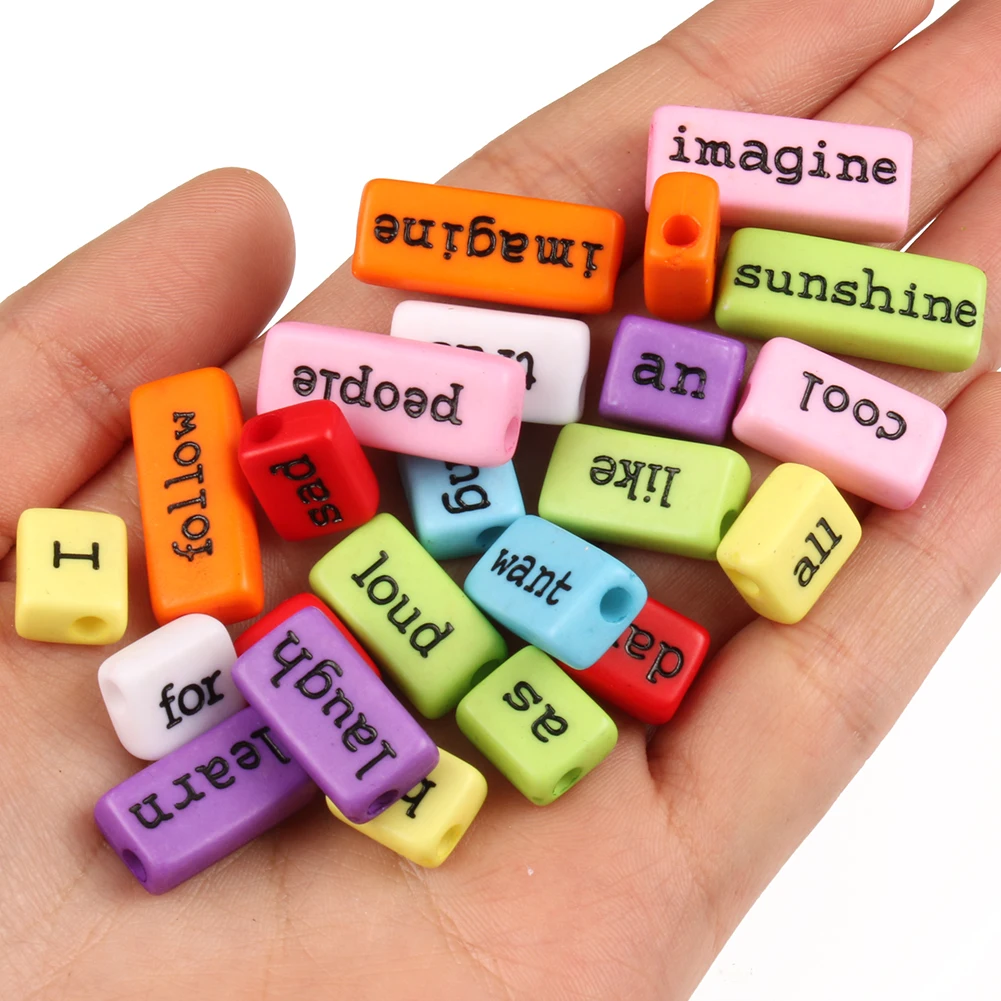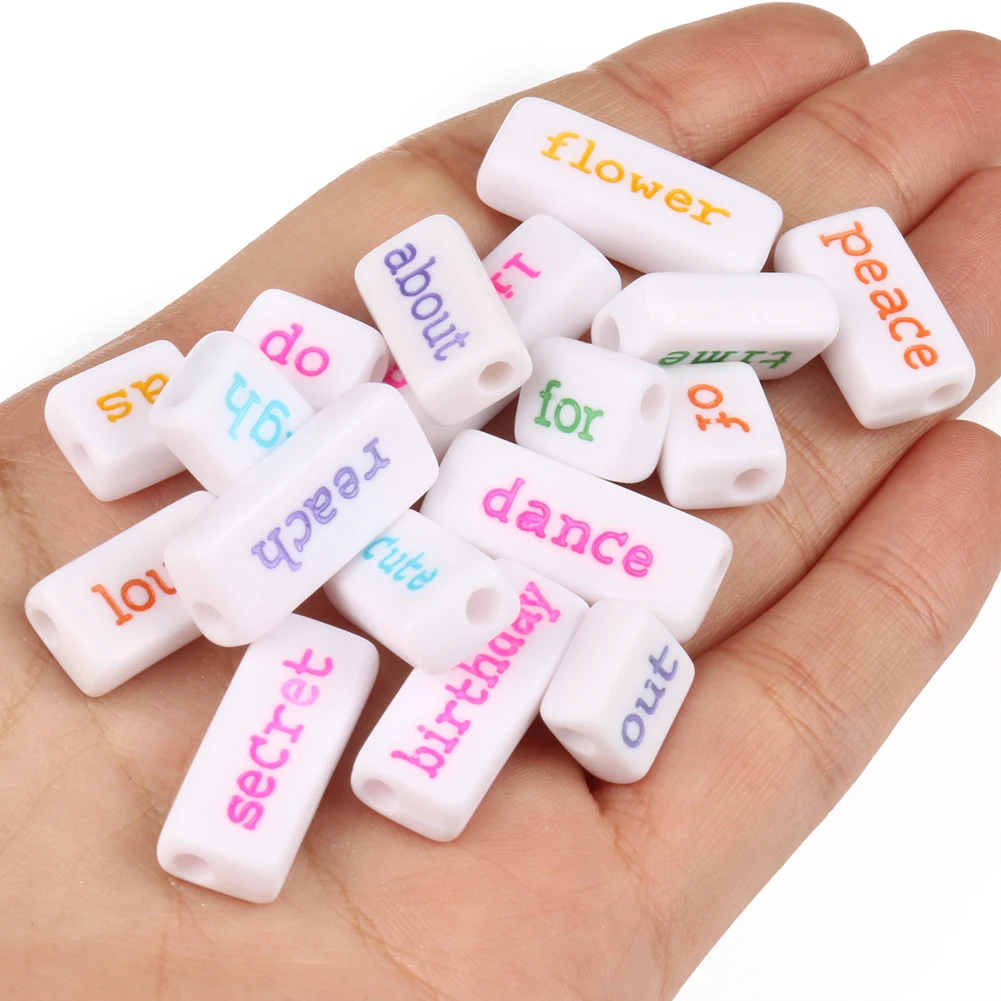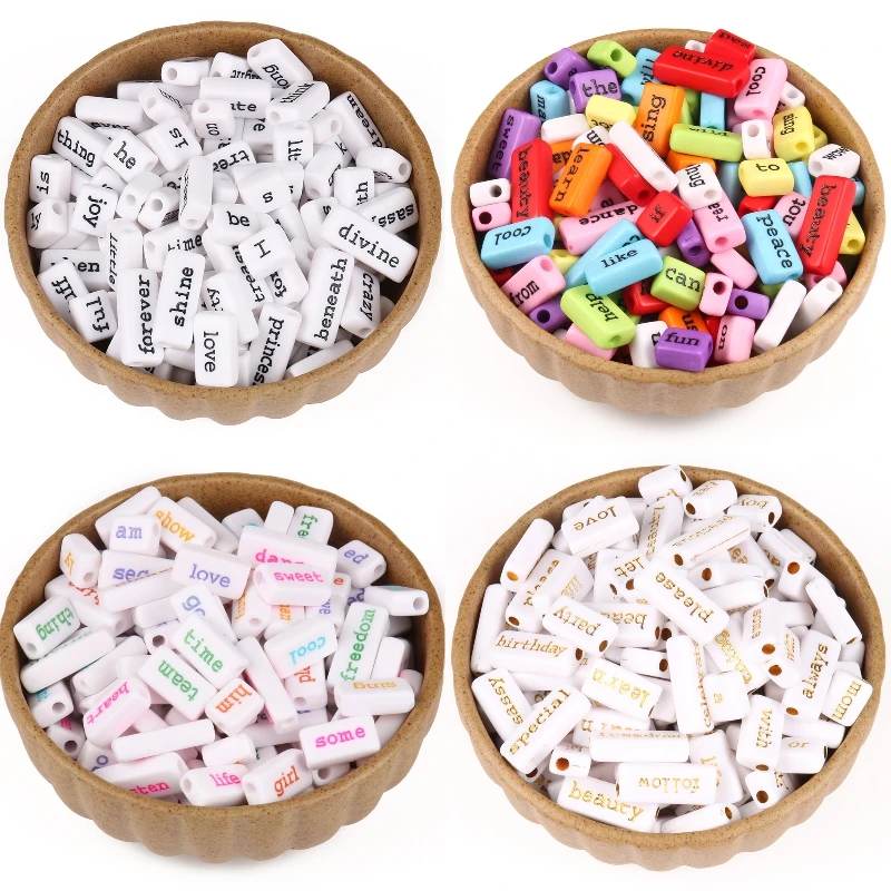 Бусины разных размеров, белые, золотые, черные бусины с надписью надпись, прямоугольные бусины с отверстием, для самостоятельного изготовления ювелирных изделий для ожерелий и браслетов, 2040100 шт.