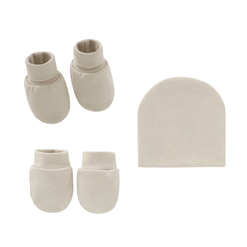 Детские вязаные хлопковые перчатки с защитой от царапин + шапка + чехол для ног варежки носки Кепка