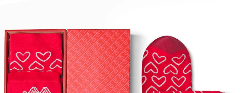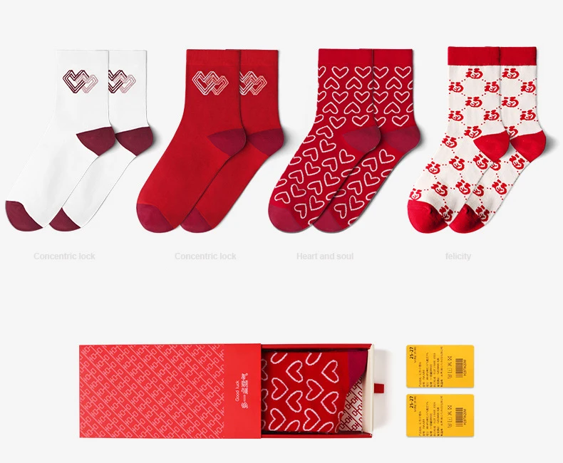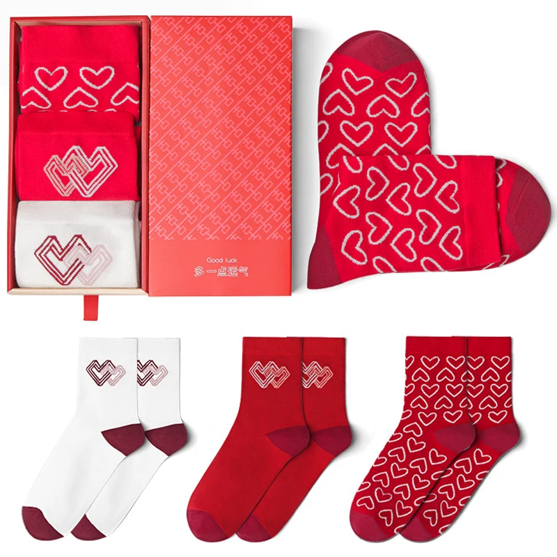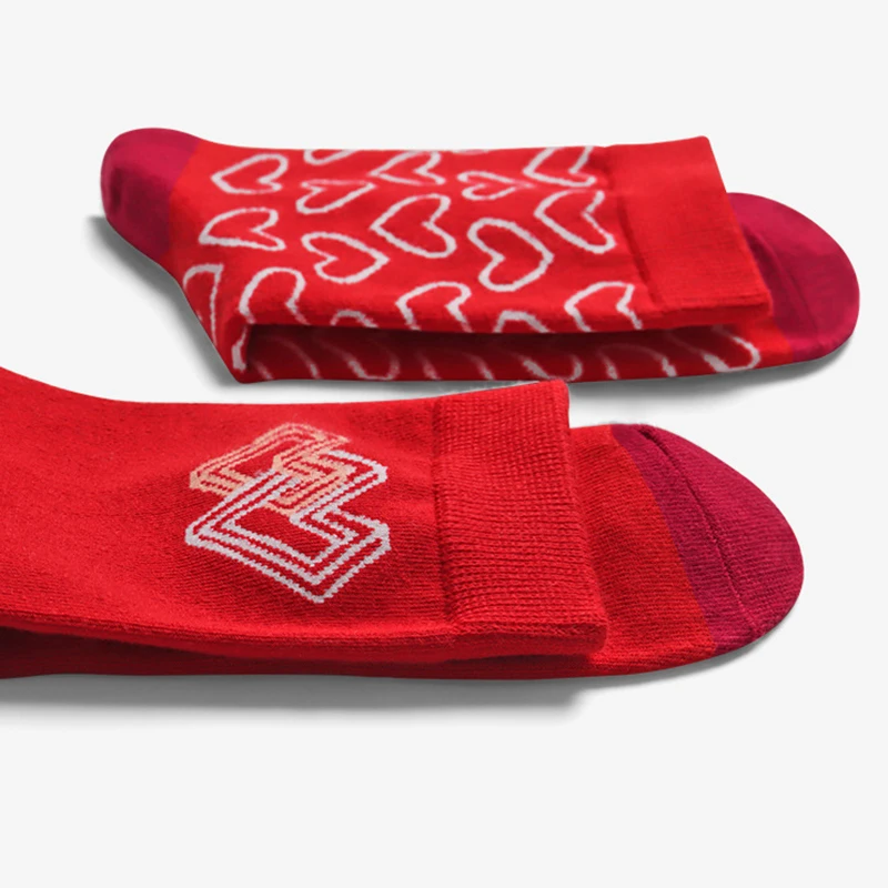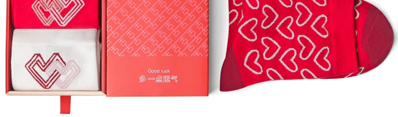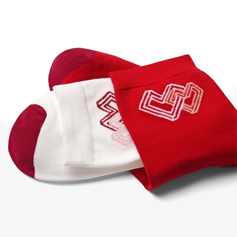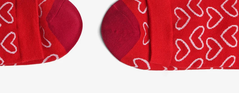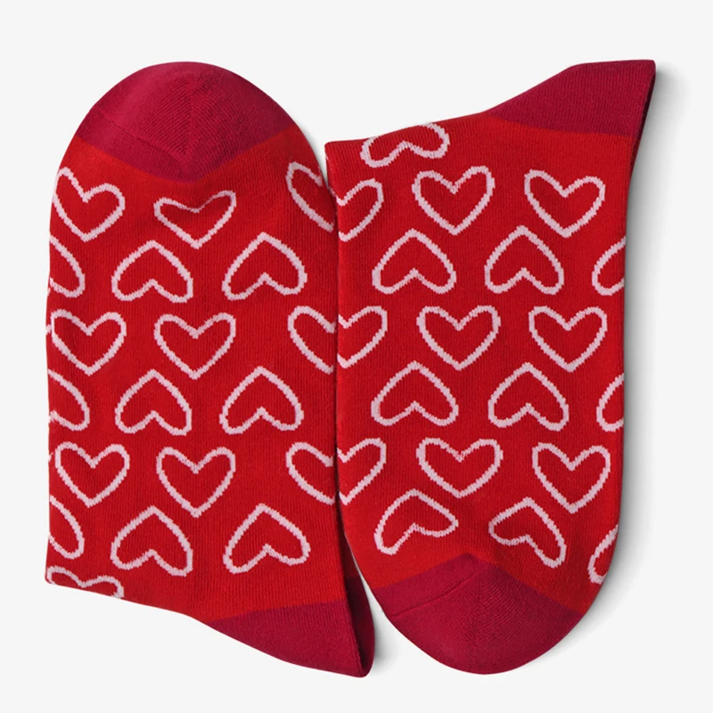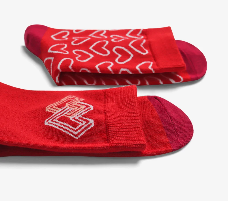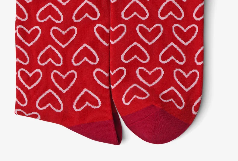 Хлопковые носки в китайском стиле для мужчин и женщин, Длинные носки с красным сердцем, забавные носки на удачу, домашние носки до щиколотки