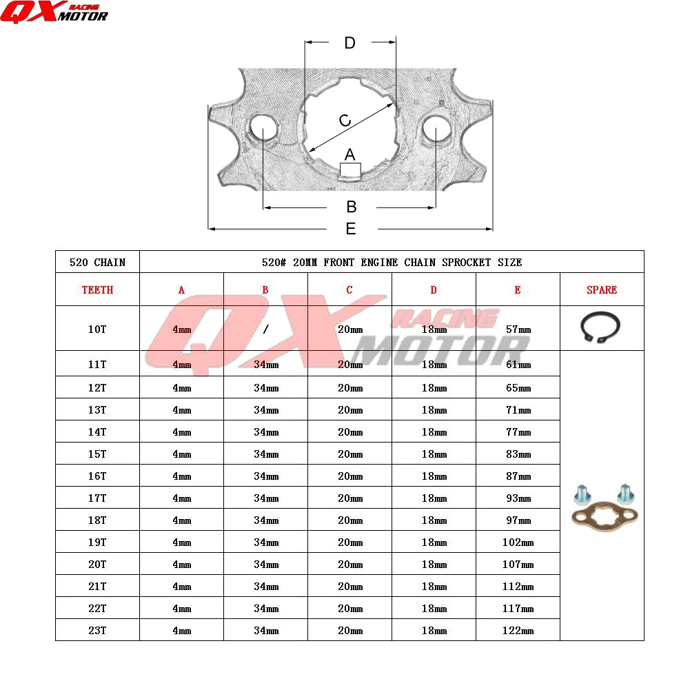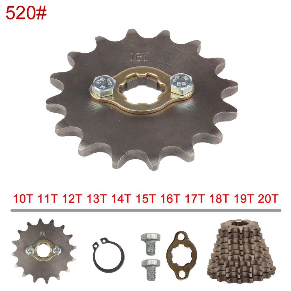Звездочки передней цепи двигателя 520 #10T 11T 12T 13T 14T 15T 16T 17T 18T 19T 20T 21T 22T 23T, зубья 20 мм с фиксирующей пластиной шкафчик