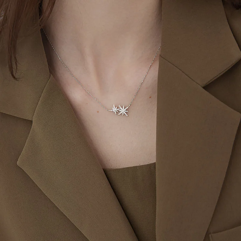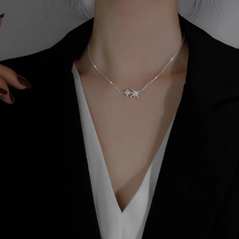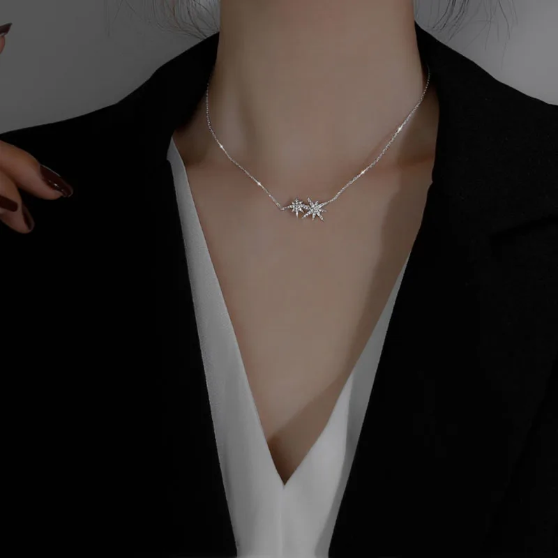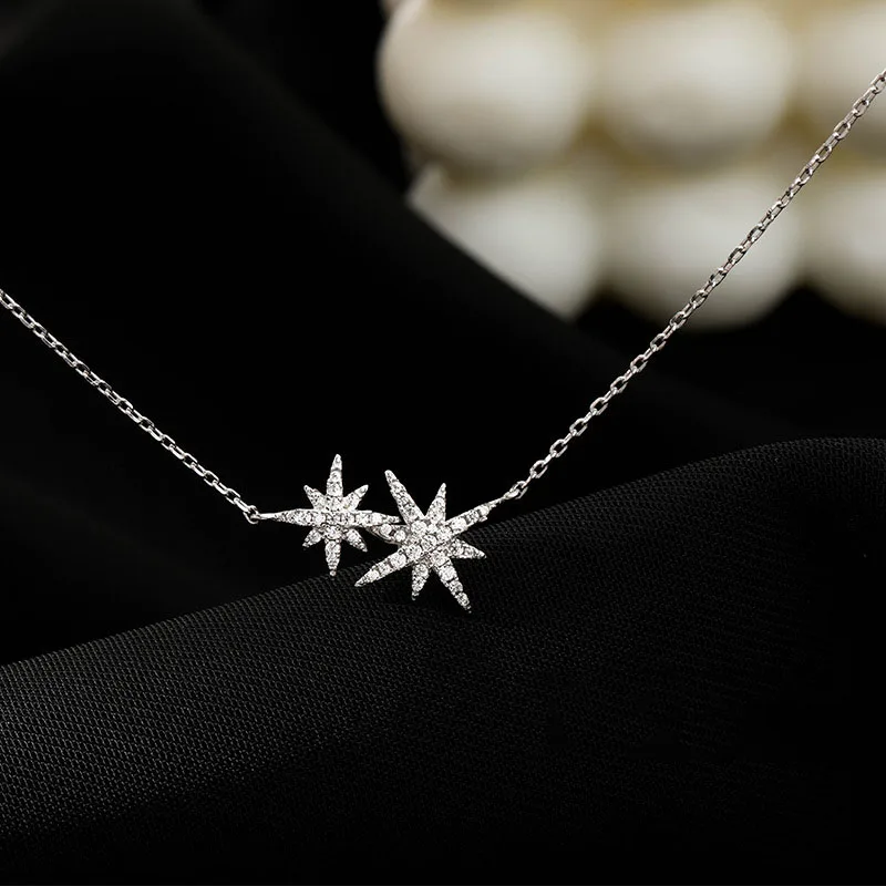 Женское Ожерелье звезда серебряного цвета, роскошная цепочка с кубическим цирконием, ювелирные изделия, подарки, оптовая продажа