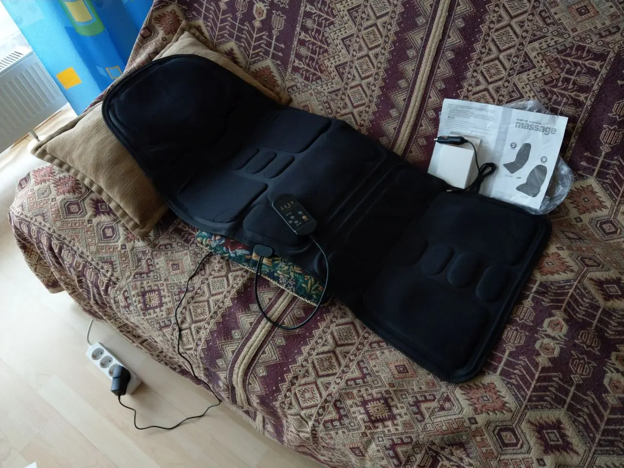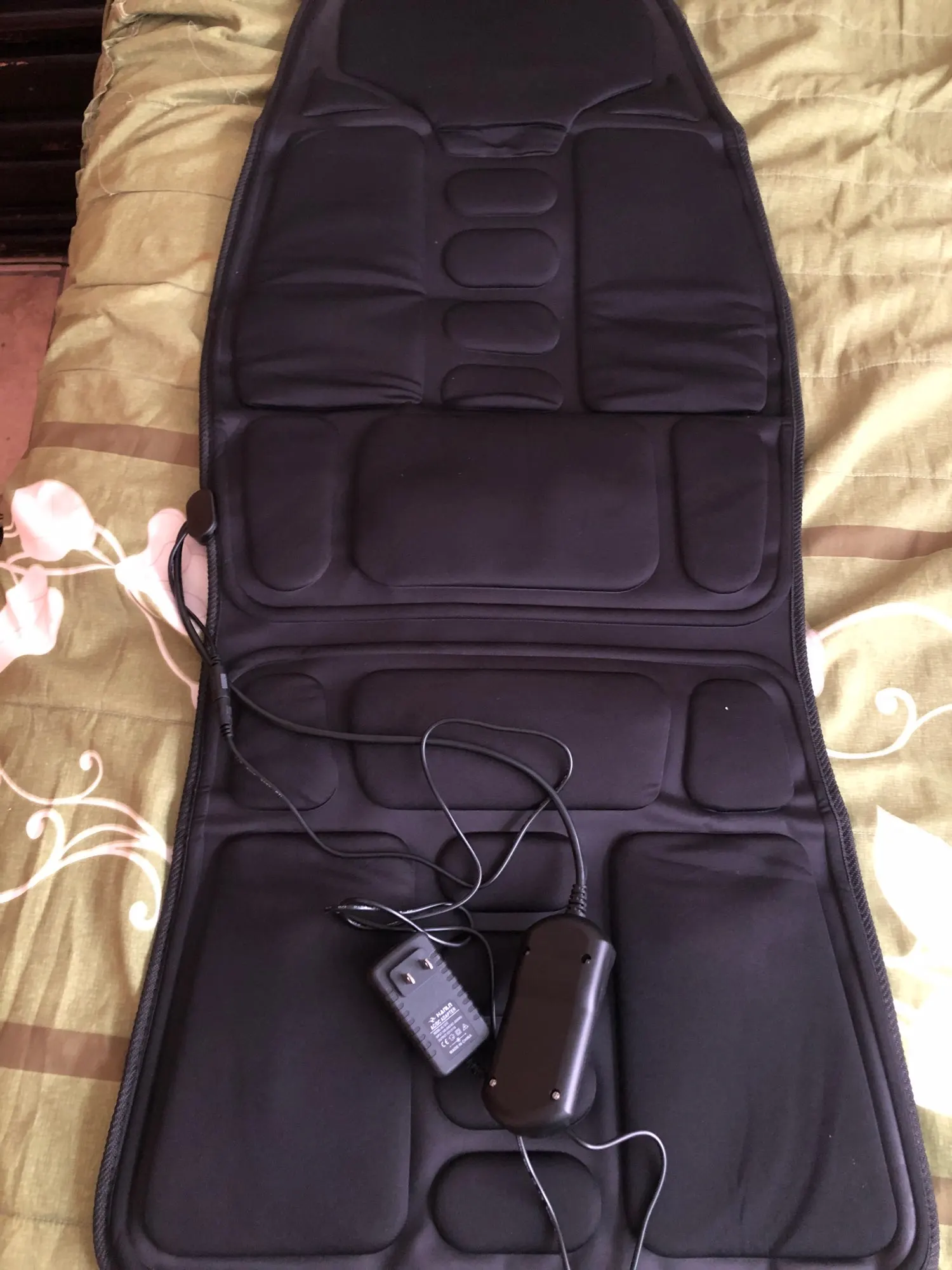 Ok, guys, here will be my detailed review of this massage pad. First of all, ATTENTION!!! If you are taller than 180cm (5'9''), this product will not meet your expectations, because the middle vibrating unit will be located a bit higher then your lumbar region or a bit lower for cervical spine. The optimal height for this product is 160-170cm (5'3'' - 5'7'') For maximum effect better use it like I show it on picture below (with two cushions for cervical and lumbar regions). Next information for EUROPEAN SOCKETS ONLY, PLEASE NOTE! it is better to plug it into the socket which is located on the floor (see my pic below), because the contacts on the socket plug are thin and if you plug it into the socket on the wall it could disconnect involuntarily from the movements of the cord, when you adjusting the pad during the massage. Otherwise this product is quite good for its price. It will give you 8 vibrating regimes. Also you could heat up a bit massaging regions. I recommend this seller.