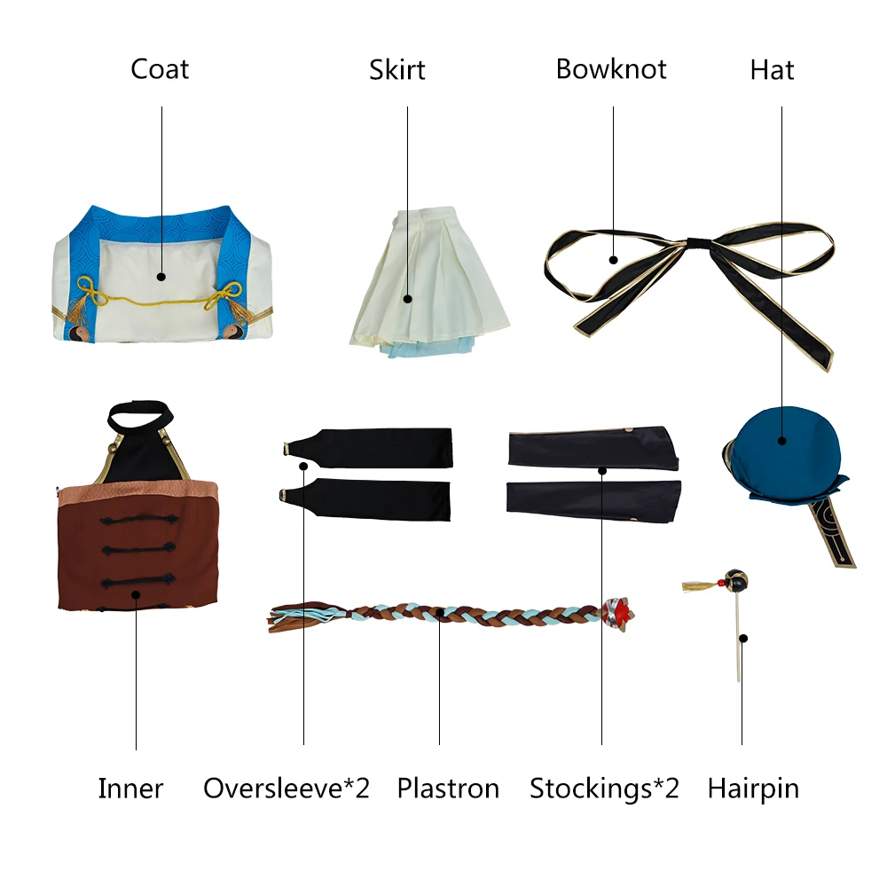 Посылка включает в себя: пальто, внутреннюю часть, юбку, бант, шляпу, нарукавник * 2, лямки, чулки * 2, шпильку